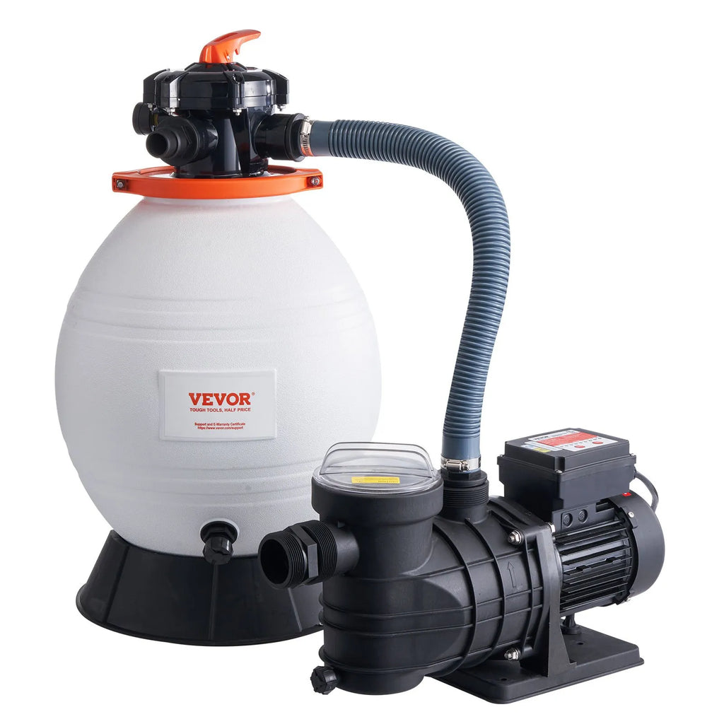 VEVOR smilšu filtra sūknis virszemes baseiniem, 400 mm, 18 000 l/h, 850 W, baseina sūkņa un filtra komplekts ar 6-virzienu daudzportu vārstu un sietiņa grozu, mājas un komerciālai lietošanai