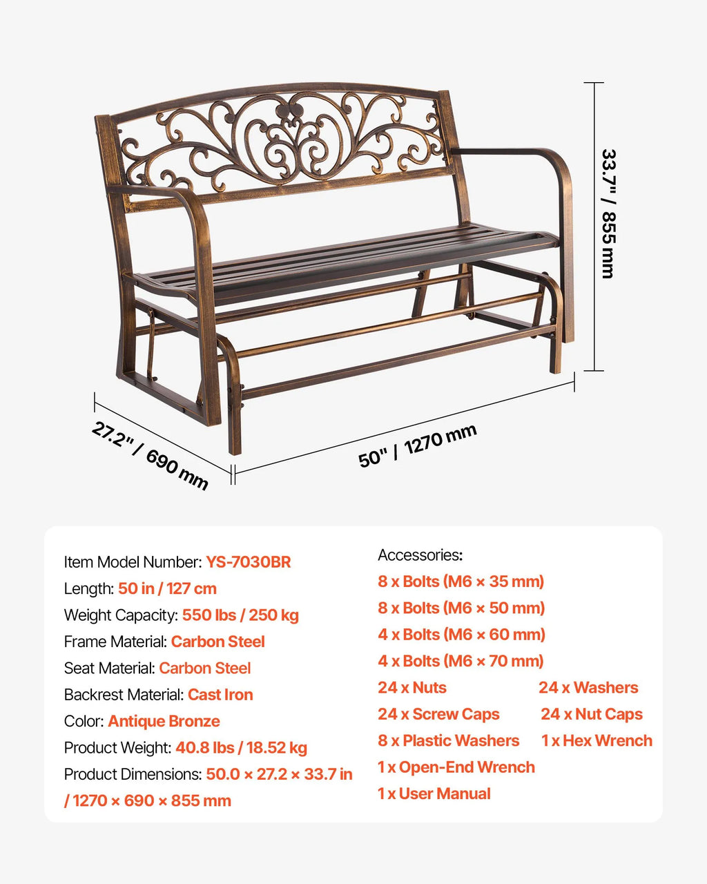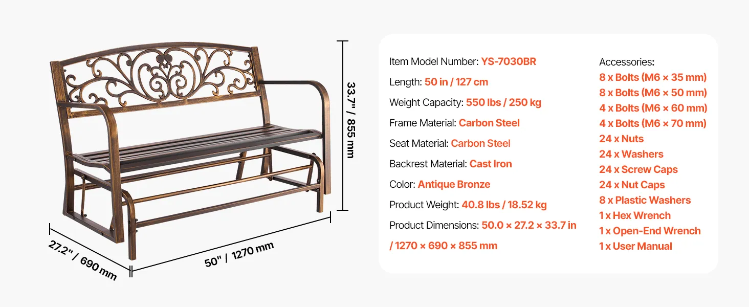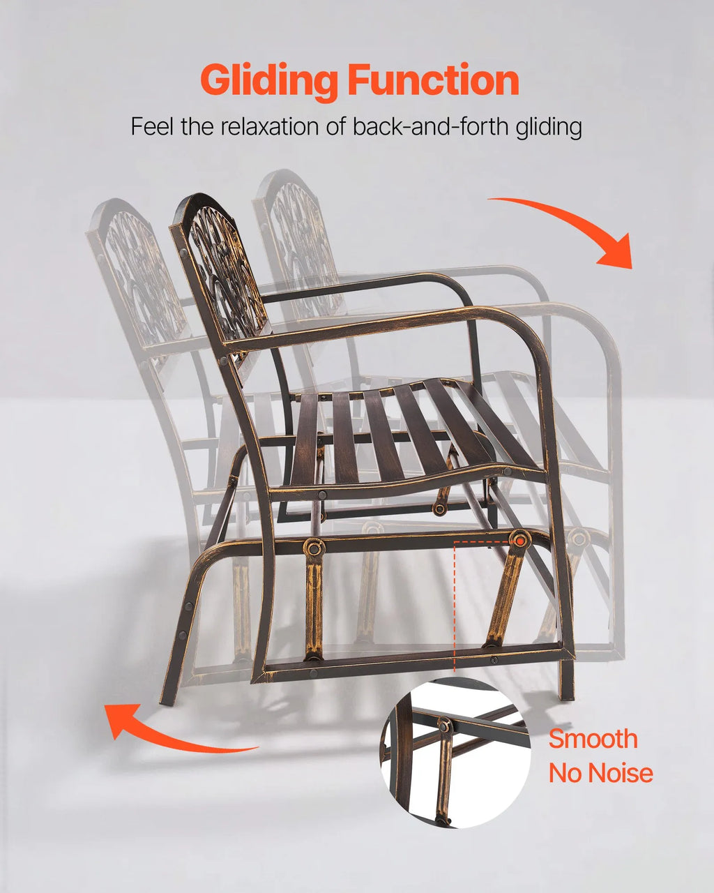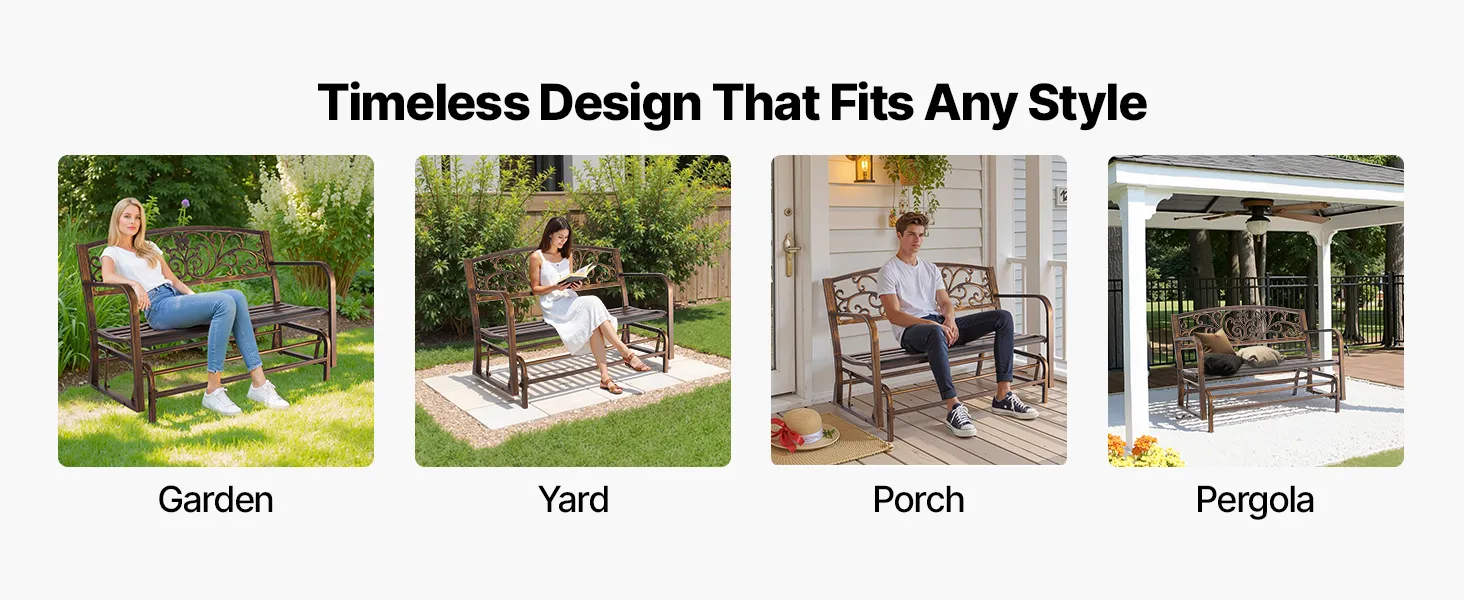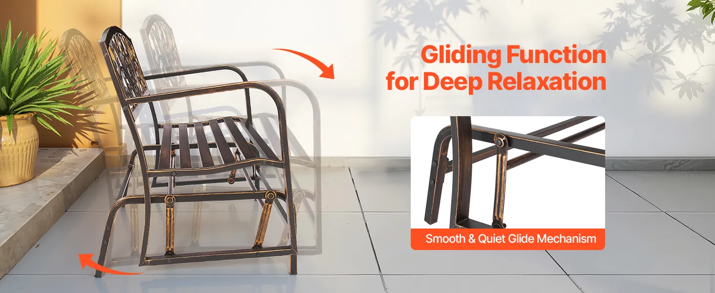 Vienmērīga šūpošanās: Iebūvētā šūpojošā pamatne nodrošina vieglu, patīkamu kustību uz priekšu un atpakaļ. Šis āra šūpojošais sols rada relaksējošu atmosfēru dārzā, lievenī vai pagalmā.