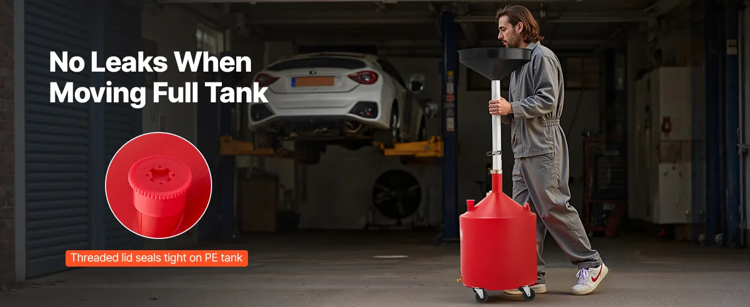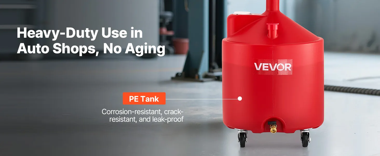 • Šī eļļas savākšanas tvertne ļauj apkalpot vairākus transportlīdzekļus vienlaikus, samazinot nepieciešamību bieži iztukšot tvertni. Mazāk piepūles, vairāk efektivitātes – ideāli piemērota noslogotām darbnīcām un servisiem!