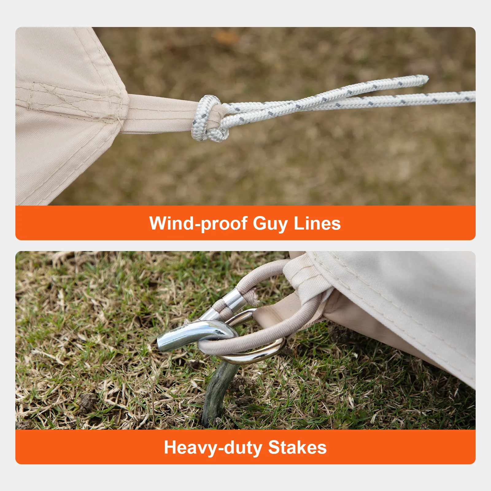VEVOR audekla telts ir aprīkota ar noņemamām sānu sienām, kas ļauj pielāgoties laikapstākļiem un vajadzībām. Siltā laikā tās var sarullēt, nodrošinot lielisku ventilāciju un atvērtu telpu, savukārt lietus vai vēja gadījumā tās viegli aizveramas, lai nodrošinātu privātumu un aizsardzību.