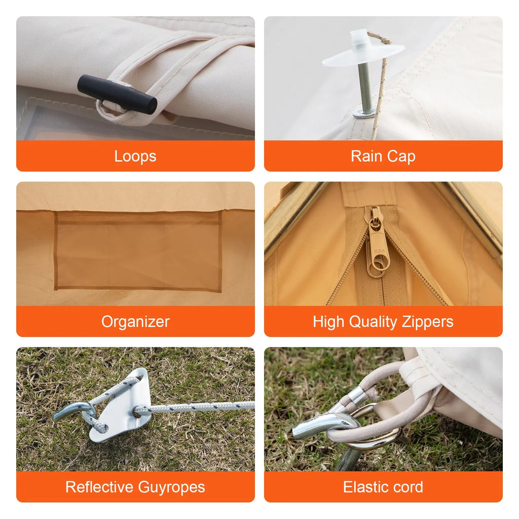 Audekla glampinga zvanu telts maksimālam komfortam un izturībai