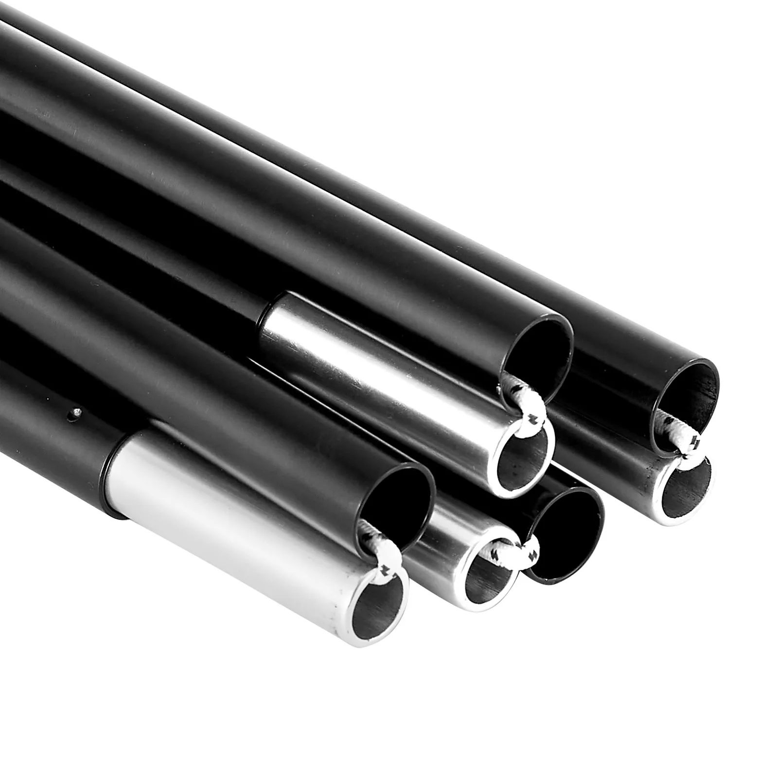 Komplektā ietilpst divi salokāmi melni alumīnija galvenie stieņi, kas nodrošina ērtu uzglabāšanu un transportēšanu.