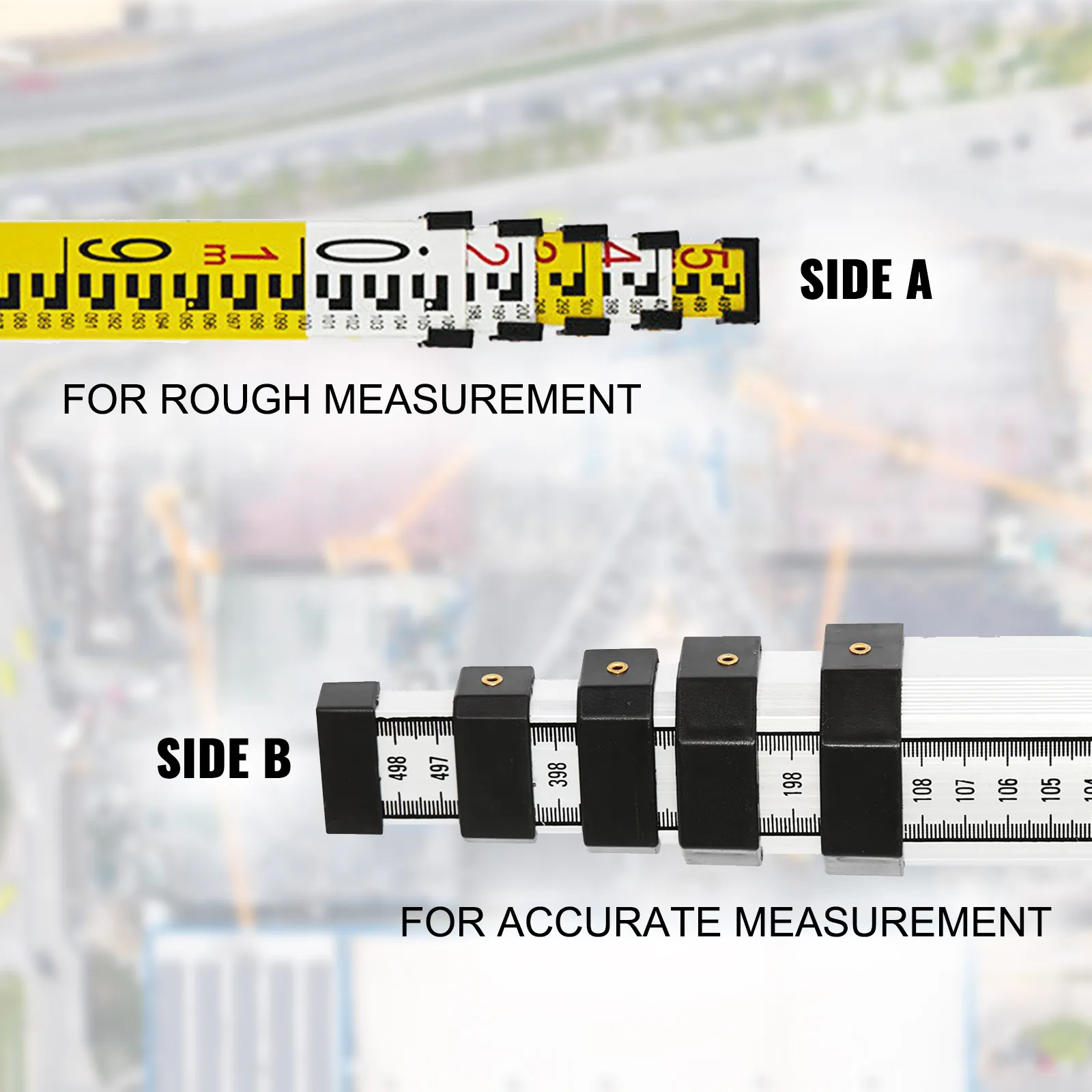 Teleskopiskajam izlīdzināšanas stienim ir precīzas divpusējas skalas, kas ļauj veikt gan precīzus, gan aptuvenus mērījumus.