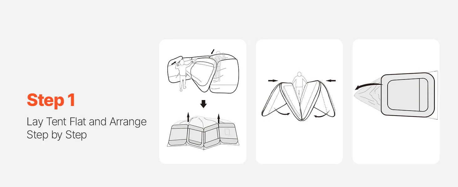 Pārdomāta izgatavošana: Telts konstrukcijā izmantoti karstumā noslēgti savienojumi, dubultas šuves un uzlaboti SBS rāvējslēdzēji, kas nodrošina augstāku ūdens un vēja izturību.