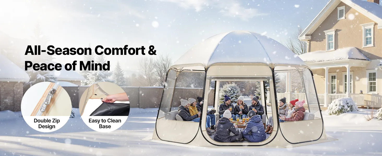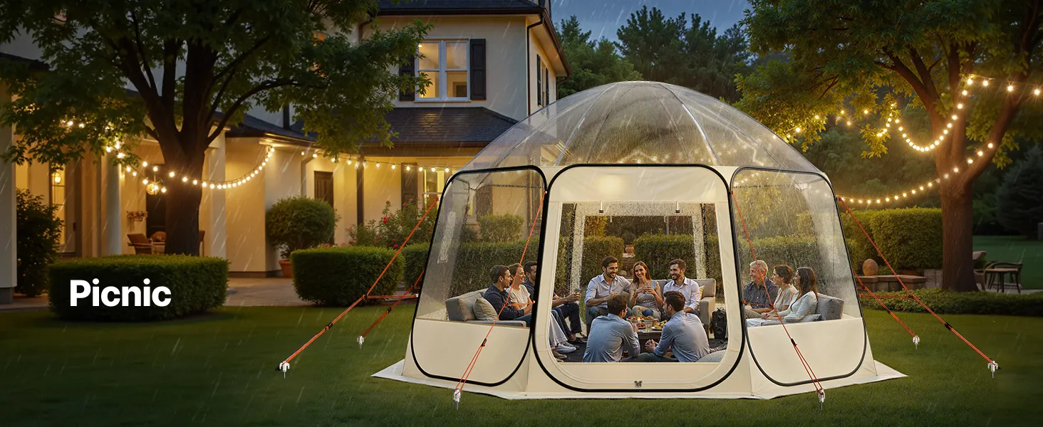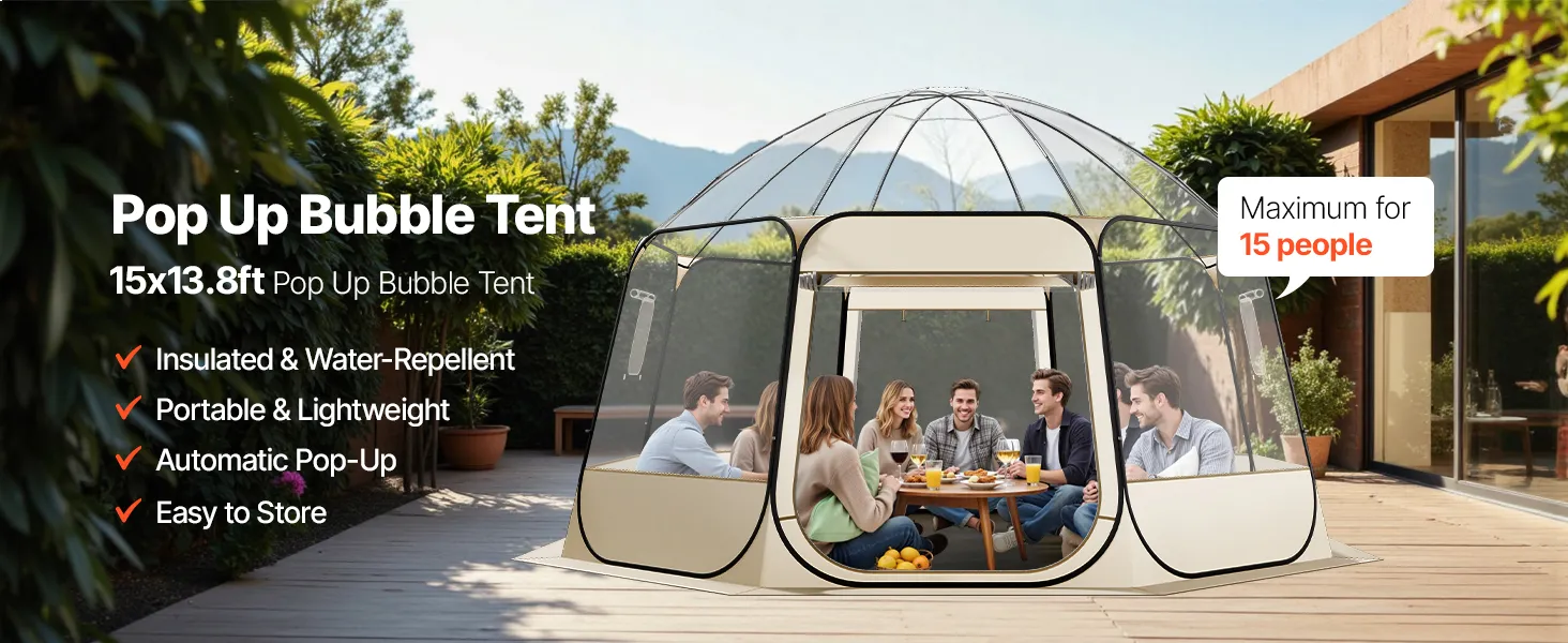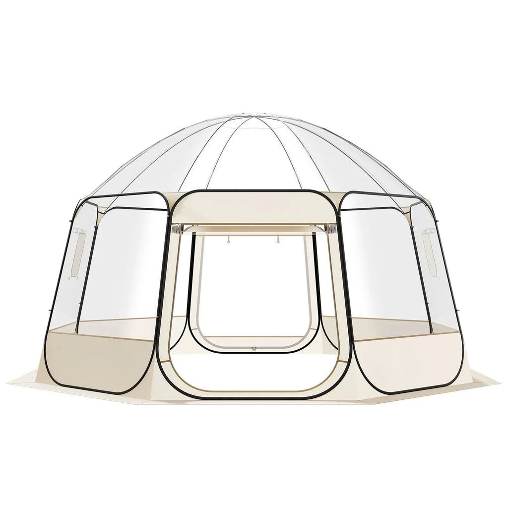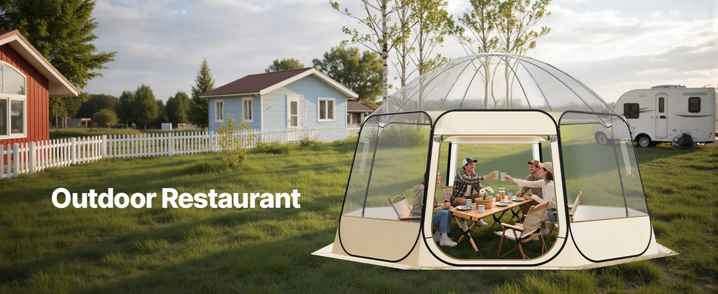 Uzpūšama caurspīdīga konstrukcija: Šī kupola tipa uzpūšamā telts tiek uzstādīta dažu sekunžu laikā, pateicoties ātrās uzstādīšanas mehānismam. Izbaudi 540° panorāmas skatu un pilnībā saplūsti ar apkārtējo dabu. Piezīme: šī telts ir piemērota vēsākam rudenim un ziemai, nav ieteicama lietošanai karstā laikā.