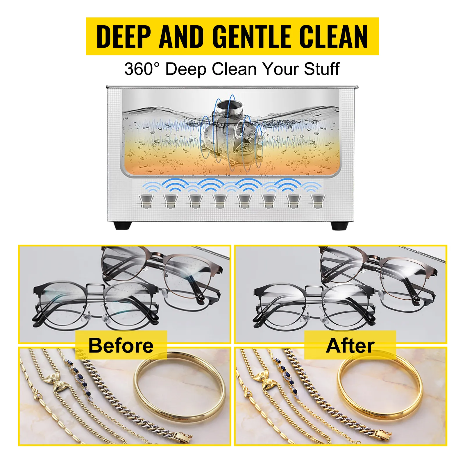 VEVOR 0,8 L ultraskaņas tīrītājs ar digitālu taimeri un sildītāju, 35 W nerūsējošā tērauda ierīce rotaslietu, briļļu un citu priekšmetu tīrīšanai – piemērots komerciālai un mājas lietošanai