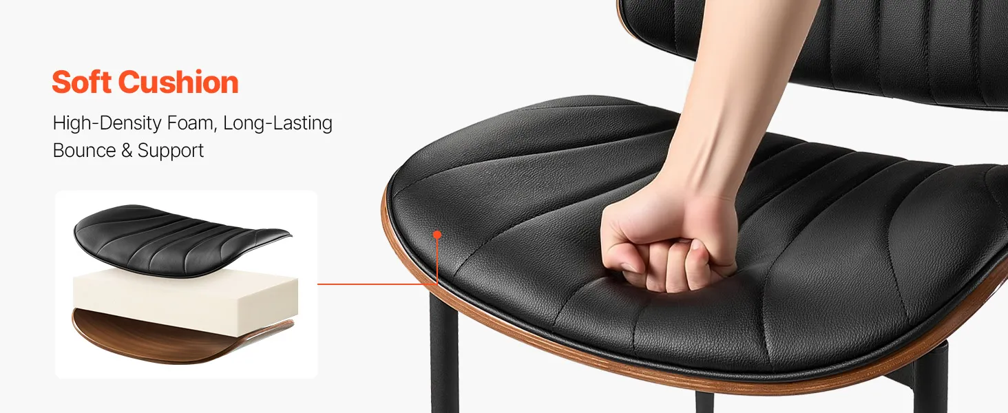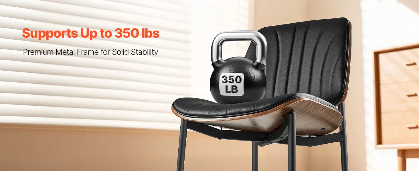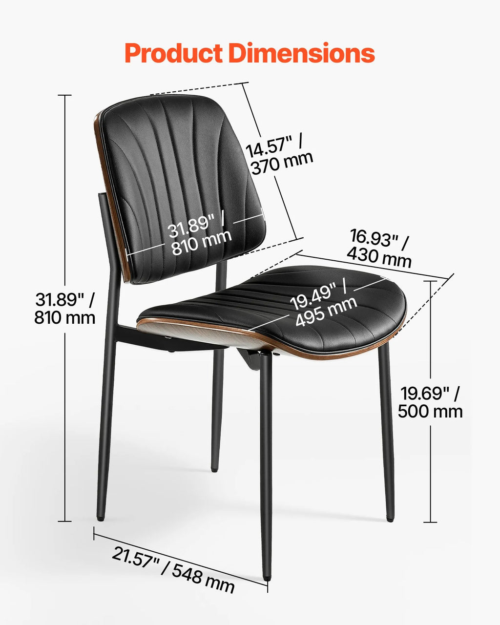 VEVOR 2 gab. mūsdienīgi krēsli ar ādas apdari, biezām sēdvietām un metāla kājām, melni