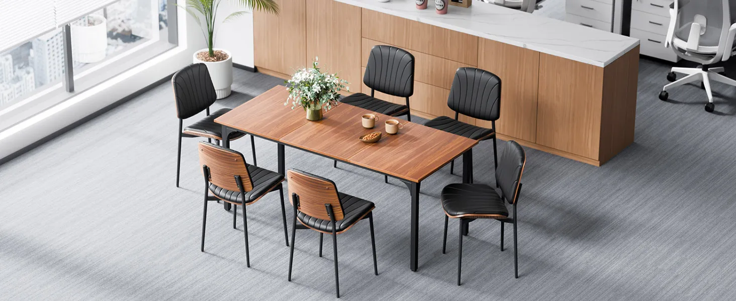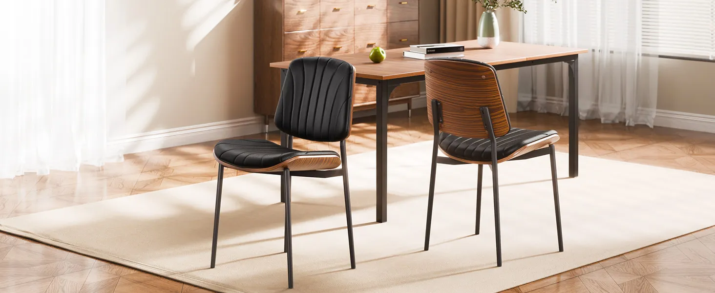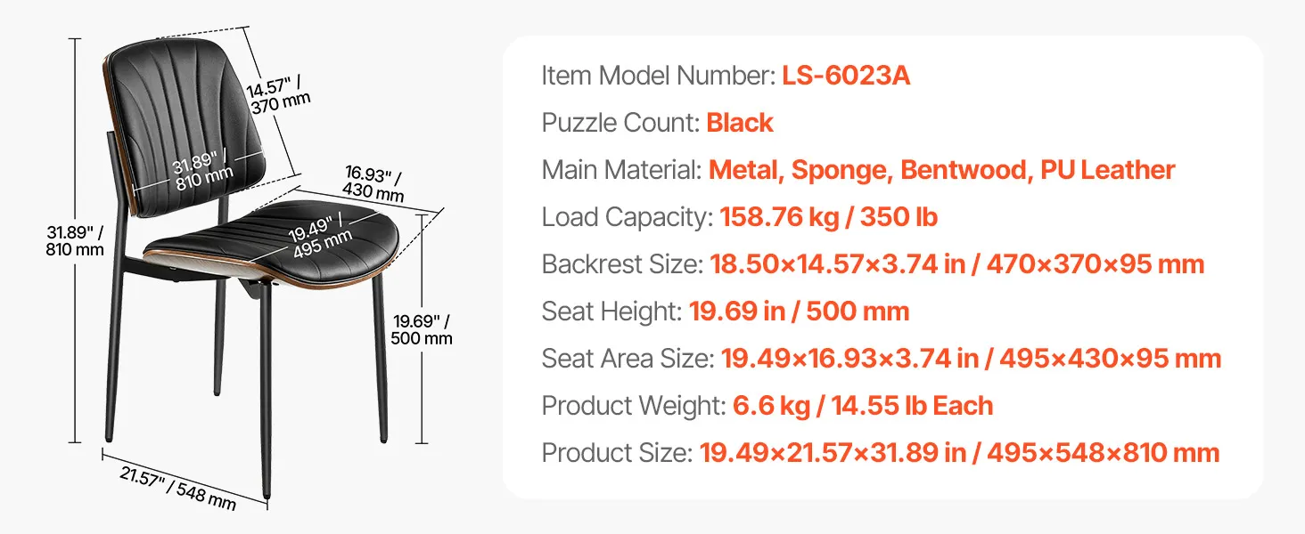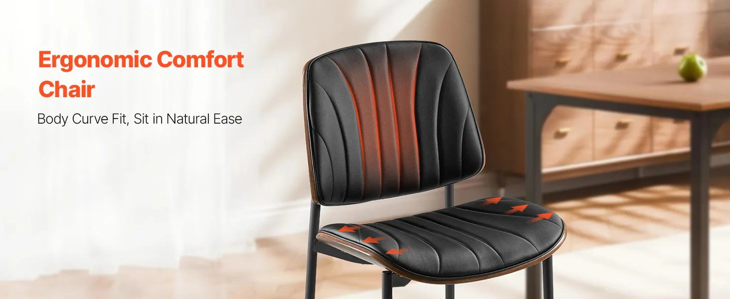VEVOR 2 gab. mūsdienīgi krēsli ar ādas apdari, biezām sēdvietām un metāla kājām, melni