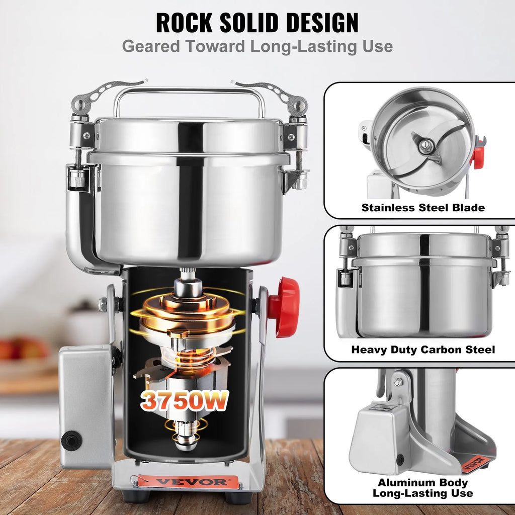 VEVOR 2500 g elektriskās graudu un garšvielu dzirnaviņas, augstas ātrdarbības 2500 W komerciālā malšanas iekārta no nerūsējošā tērauda