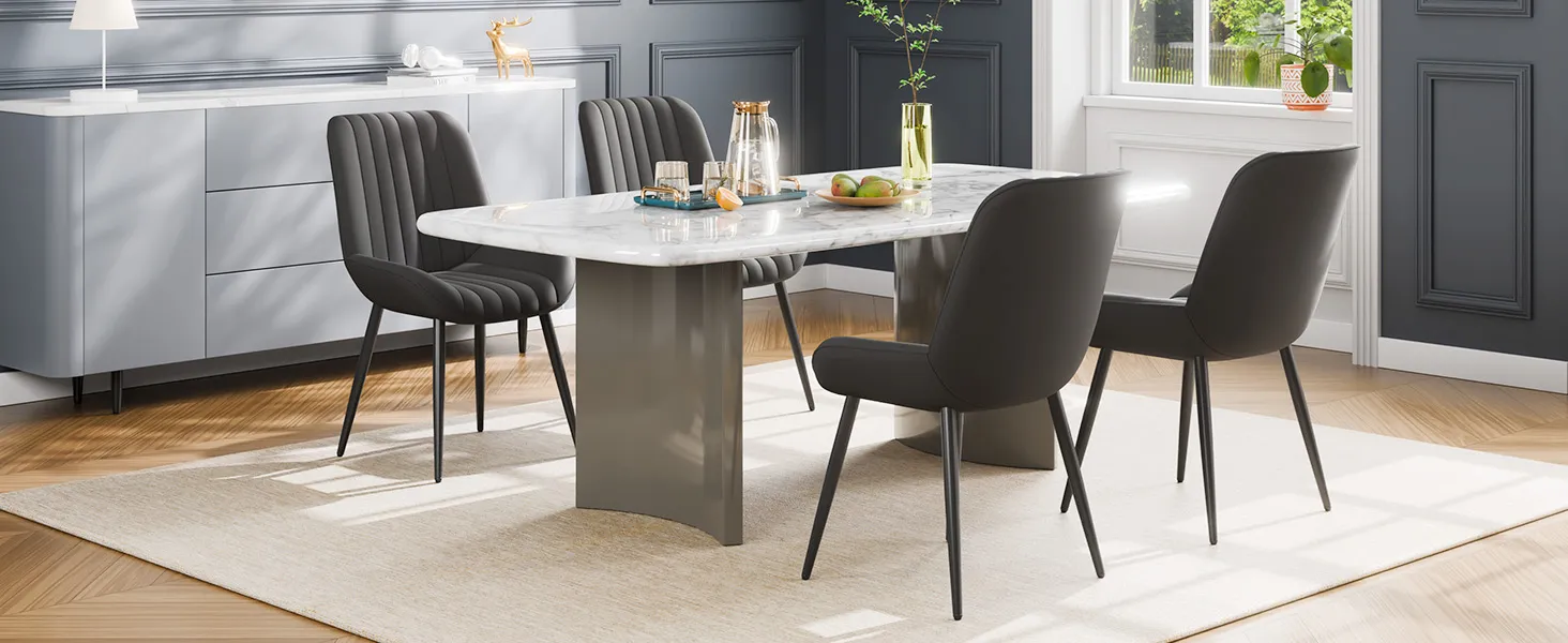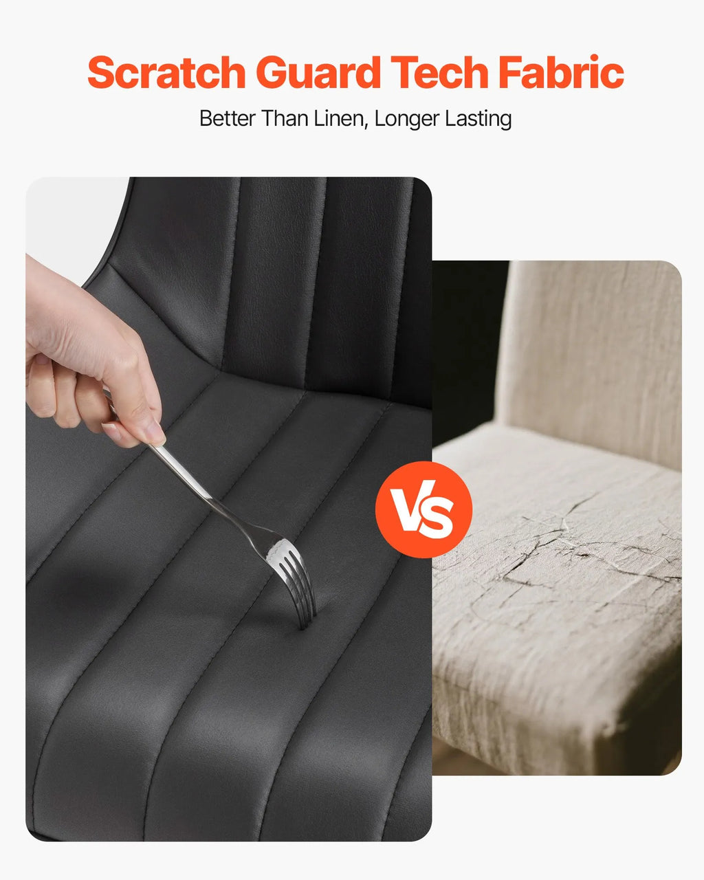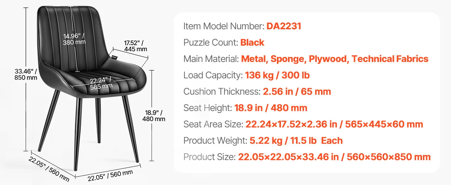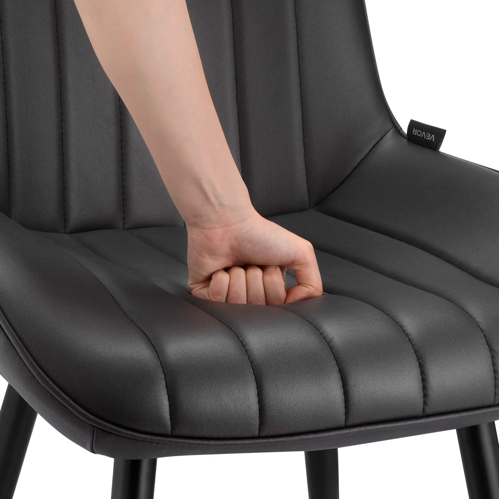 VEVOR 4 gab. mūsdienīgi auduma krēsli ar biezām sēdvietām un metāla kājām, melni