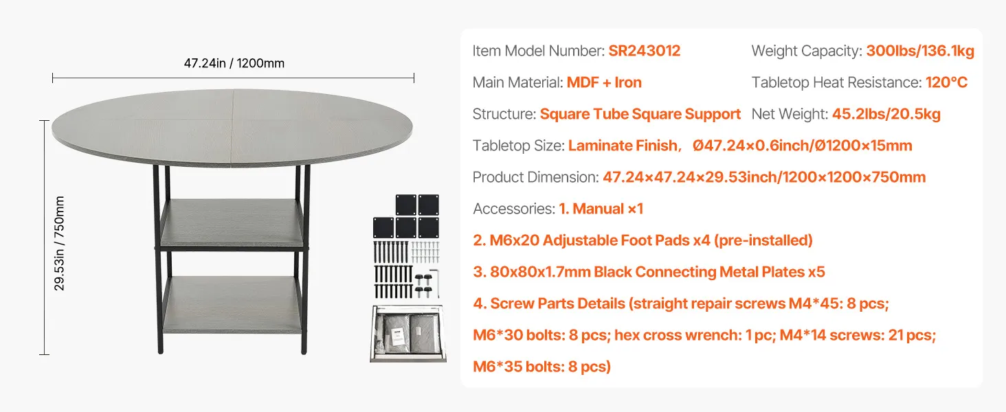 Viegli saliekams: Mūsu virtuves galds ir aprīkots ar detalizētu montāžas instrukciju un pilnu komplektu ar augstas kvalitātes skrūvēm un stiprinājumiem, nodrošinot ātru un vienkāršu montāžas procesu. Neatkarīgi no tā, vai esat iesācējs vai pieredzējis montētājs, galds būs salikts īsā laikā un gatavs lietošanai, ietaupot gan laiku, gan pūles.