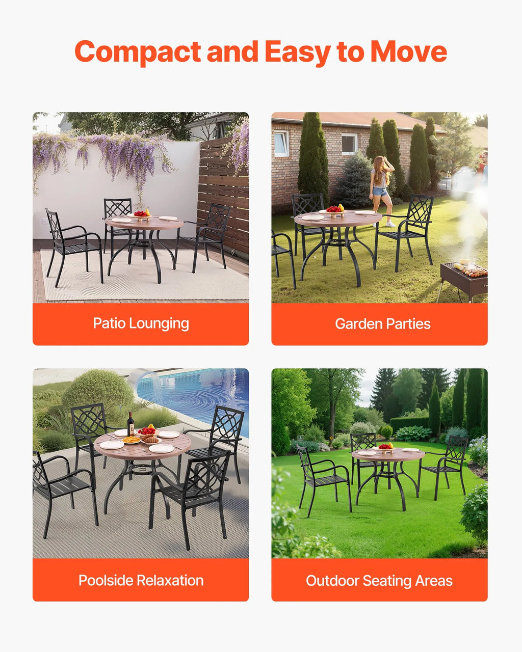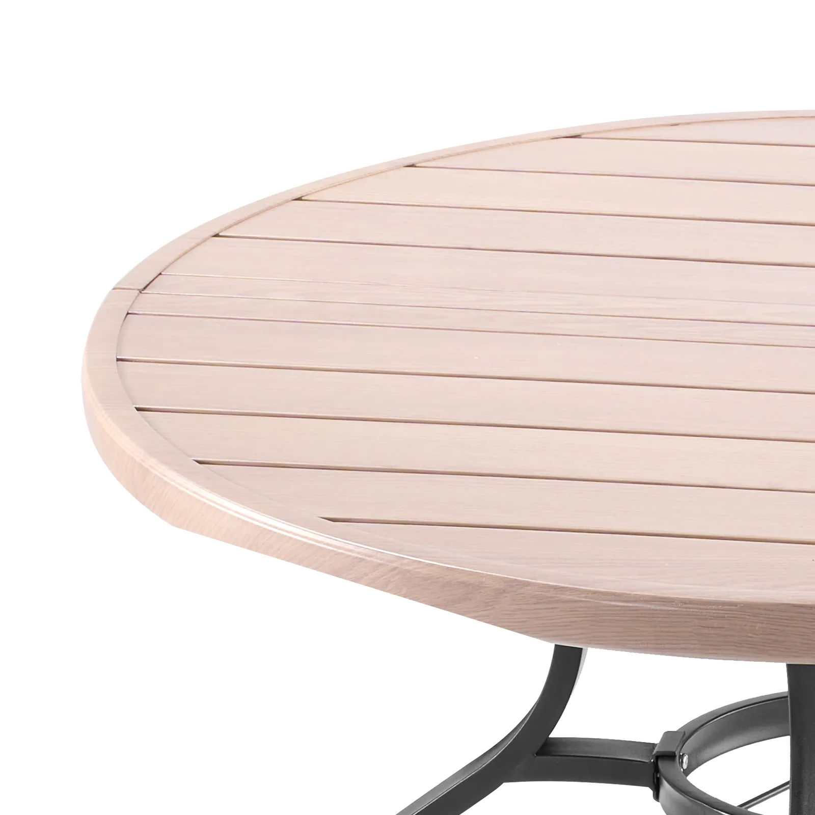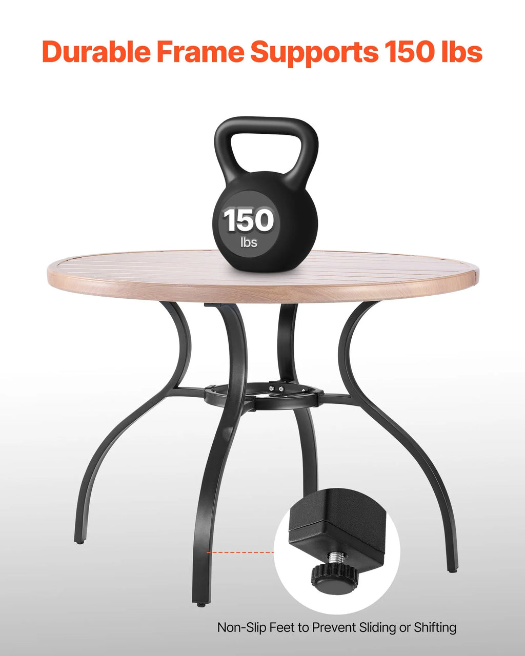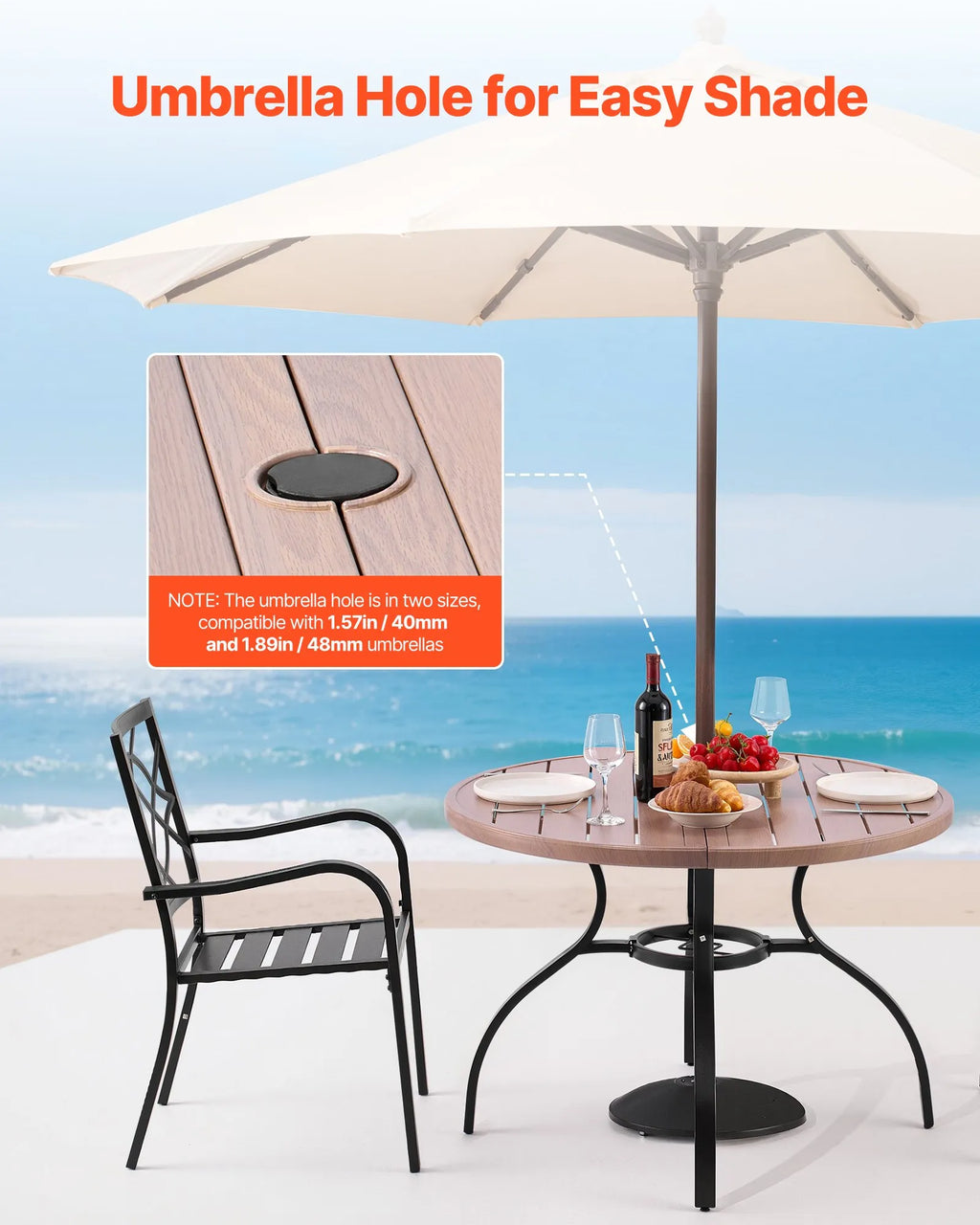 VEVOR āra apaļais dārza galds, 103 cm, tērauda slāņu konstrukcija ar koka faktūru, piemērots 4 personām, ar 38 mm saulessarga atveri, laikapstākļu izturīgs galds dārzam, terasei un pagalmam, pelēks