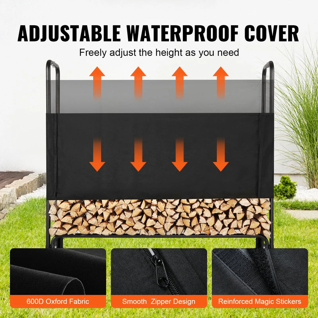 Pārsegs izgatavots no 600D Oxford auduma, nodrošinot drošu aizsardzību pret mitrumu un nokrišņiem. Tas ir biezs, izturīgs un paredzēts ilgstošai lietošanai. Regulējams augstums ļauj pielāgot ventilāciju atbilstoši malkas daudzumam, savukārt rāvējslēdzēji abos galos nodrošina ērtu piekļuvi malkai.