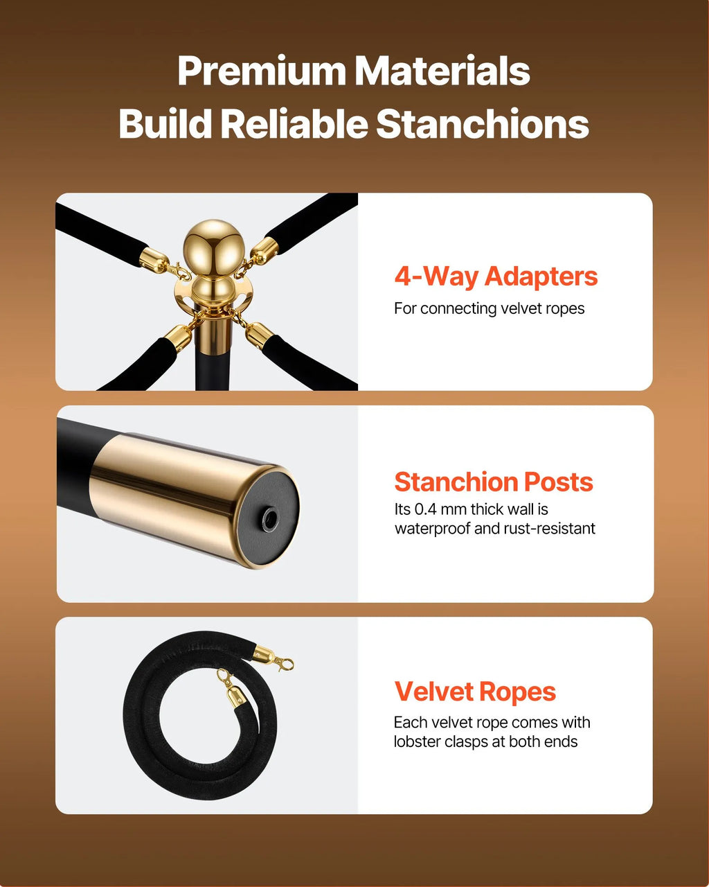 Eleganta ieejas zona: Četru virzienu savienotājs ļauj elastīgi savienot vairākas samta virves, nodrošinot sakārtotu un reprezentablu ieejas zonu.