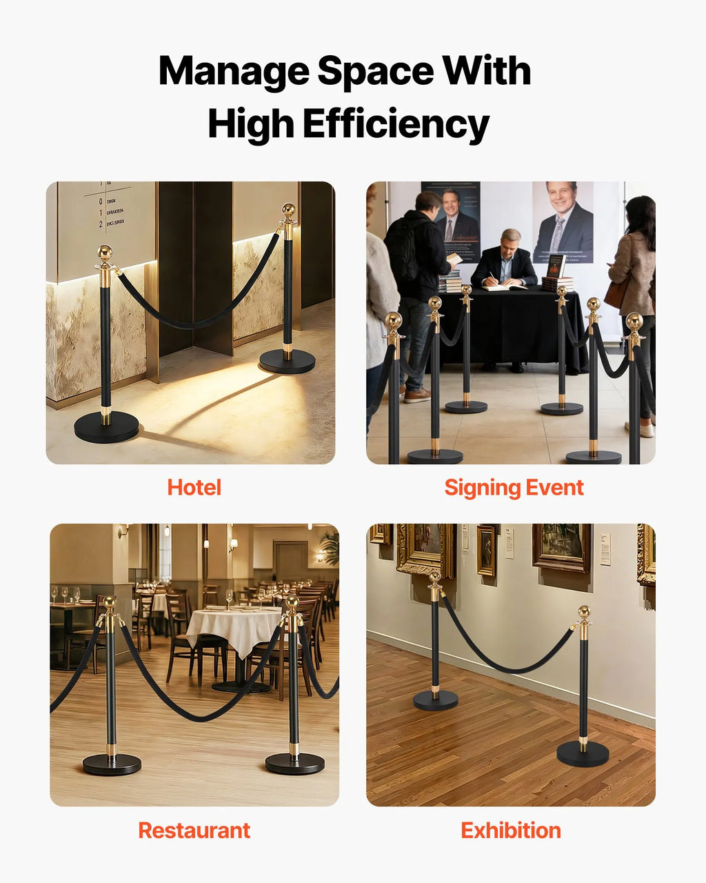Samta virvju stabi: Izgatavoti no izturīga 201 nerūsējošā tērauda, stabi ar biezām samta virvēm un kvalitatīvu metāla apdari nodrošina uzticamu cilvēku plūsmas virzību un piešķir ieejai reprezentablu izskatu.