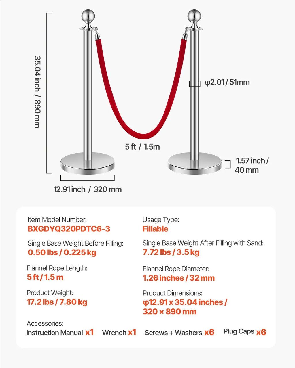 Uzticama cilvēku plūsmas kontrole: Izgatavots no izturīga 201 nerūsējošā tērauda, barjeras stabs nodrošina efektīvu norobežošanu un cilvēku plūsmas organizēšanu. Piemērots kāzām, muzejiem un pasākumiem, palīdz uzturēt kārtību.
