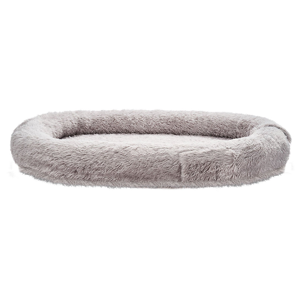 VEVOR cilvēka izmēra suņu gulta, 171 × 100 × 24 cm ortopēdisks memory foam matracis, cilvēka izmēra gulta suņiem ar sānu kabatu, rokturi un rāvējslēdzēju, noņemamu un mazgājamu mašīnā, pelēkā krāsā.
