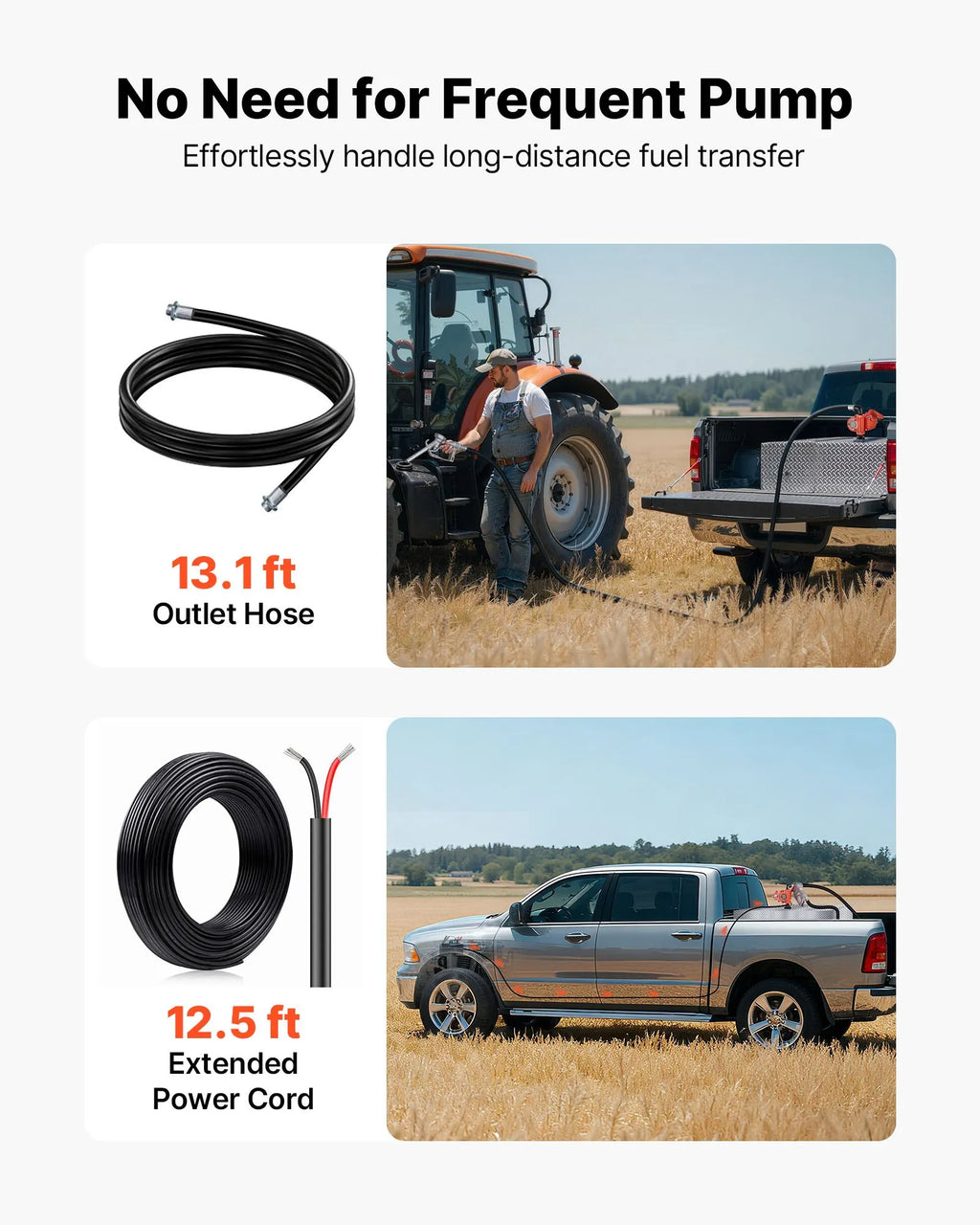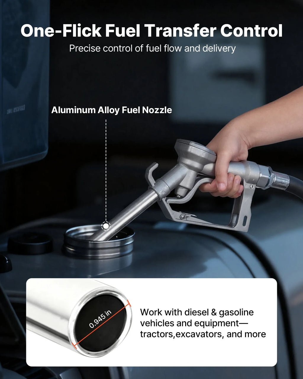 VEVOR degvielas pārsūknēšanas sūknis 12 V DC 57 l/min sprādziendrošs ar manuālu pistoli, izplūdes šļūteni un barošanas kabeli benzīnam, dīzeļdegvielai un petrolejai