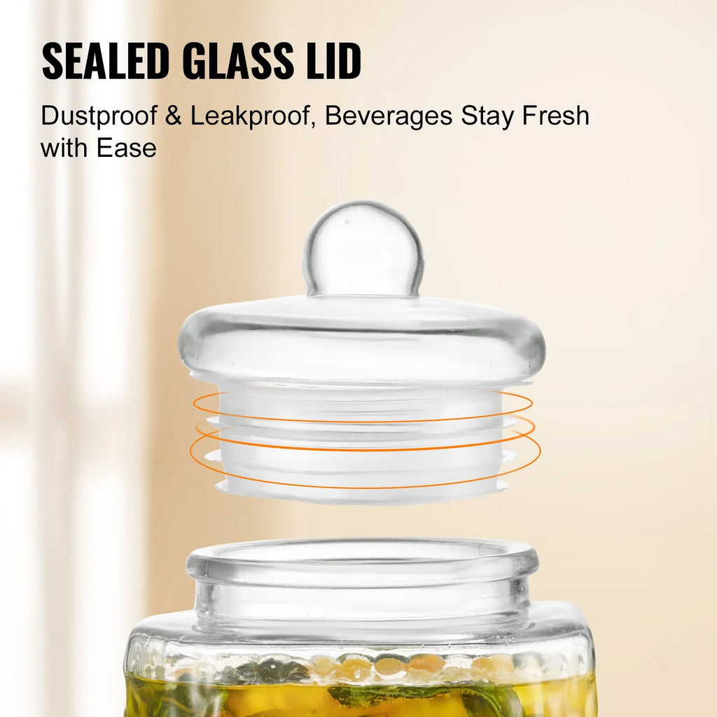 VEVOR dzērienu dozators, 5,68 L stikla sulas trauks ar statīvu un nerūsējošā tērauda krānu, piemērots tējai, limonādei, sulai un ūdenim restorāniem, viesnīcām un pasākumiem