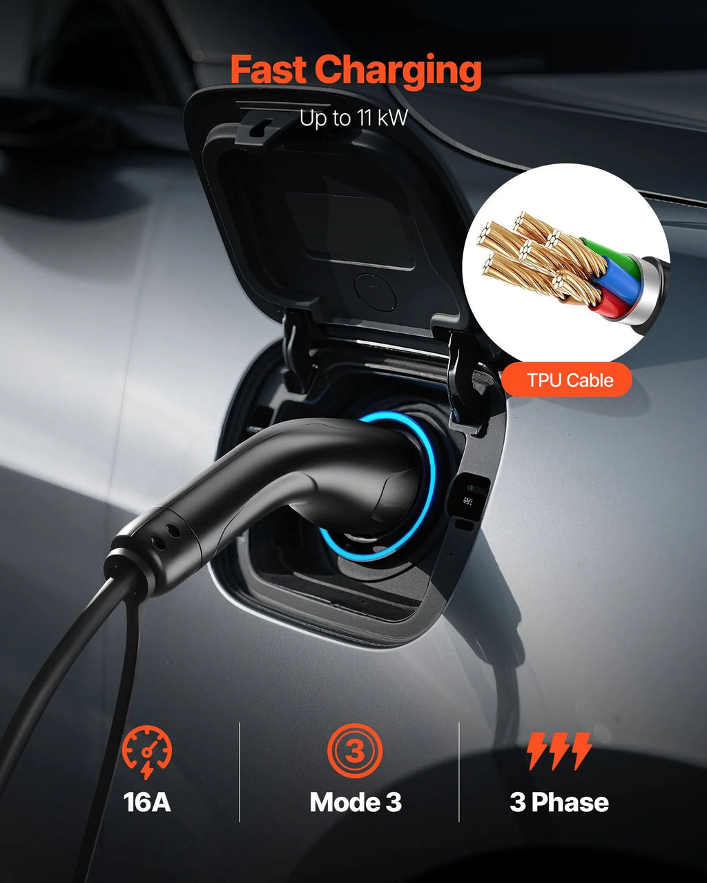 Ātra un jaudīga uzlāde: Ar 7 m kabeļa garumu šis elektromobiļu uzlādes pagarinātājs atbalsta līdz 11 kW jaudu, nodrošinot ātrāku uzlādi un samazinot gaidīšanas laiku pie uzlādes stacijas.