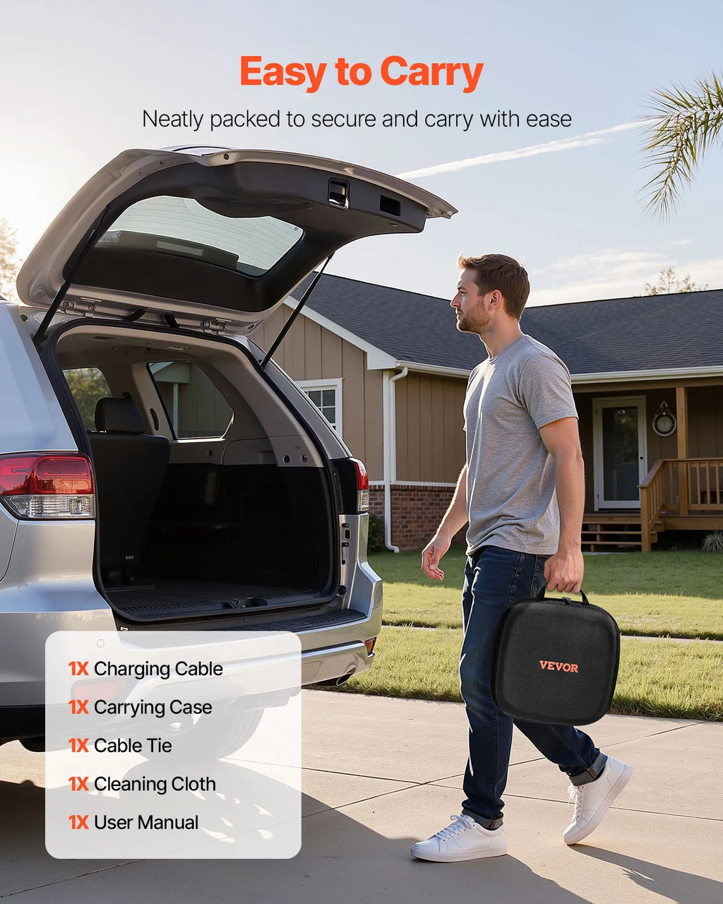 Pilns komplekts tūlītējai lietošanai: Elektromobiļu pagarinātāja kabelis tiek piegādāts ar pārnēsāšanas somu ērtai uzglabāšanai, tīrīšanas drānu savienotāju aizsardzībai pret putekļiem un kabeļa savilcēju ērtai kabeļa organizēšanai — viss nepieciešamais vienā komplektā.