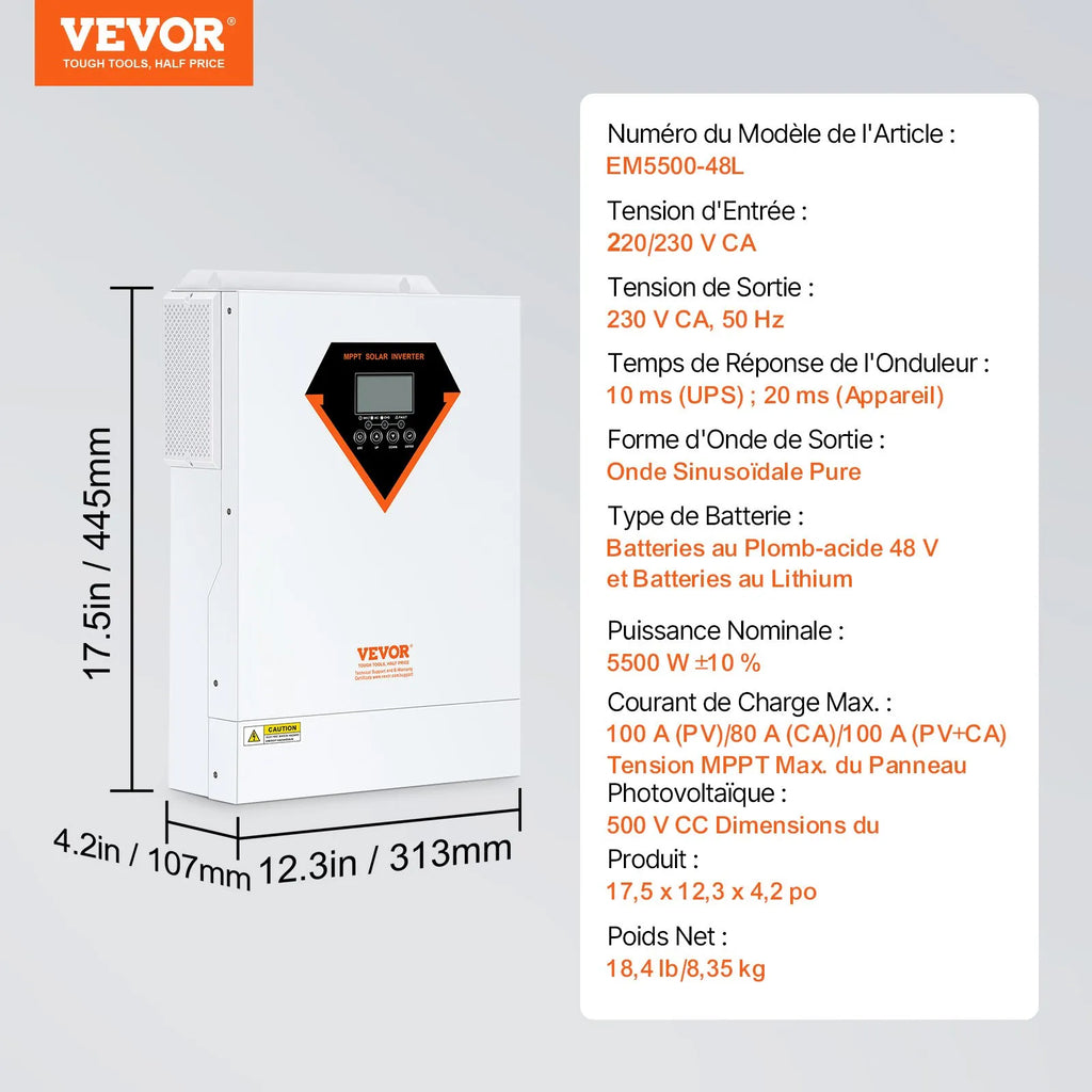 Šim mājas saules invertoram ir 5500 W nominālā jauda. Tas spēj viegli apkalpot lielas saules enerģijas sistēmas un ir piemērots mājsaimniecībām ar daudzu elektroierīču patēriņu. Invertors ir izturīgs un stabils ikdienas lietošanai. Ir iespējams pieslēgt vairāk saules paneļu, lai sasniegtu mājas nepieciešamo enerģijas apjomu.