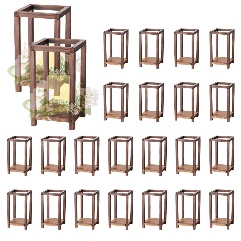 VEVOR koka kāzu laternas, 24 gab., no ciedra koka un plastmasas izgatavoti koka stila laternu svečturi, rustikāls dekoratīvs mājas centrālais akcents, ideāli piemērots kāzu galdiem, ballītēm un lauku stila interjera dekoram iekštelpās, brūnā krāsā