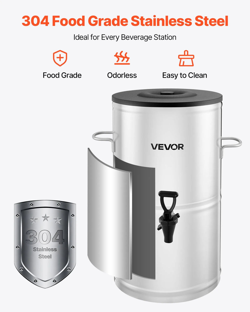 VEVOR ledus tējas dozators, 15 L (4 gal) 304 nerūsējošā tērauda dzērienu dozators ar krānu un rokturi, piemērots karstiem un aukstiem dzērieniem — ledus tējai, kafijai un ūdenim kafejnīcās un restorānos