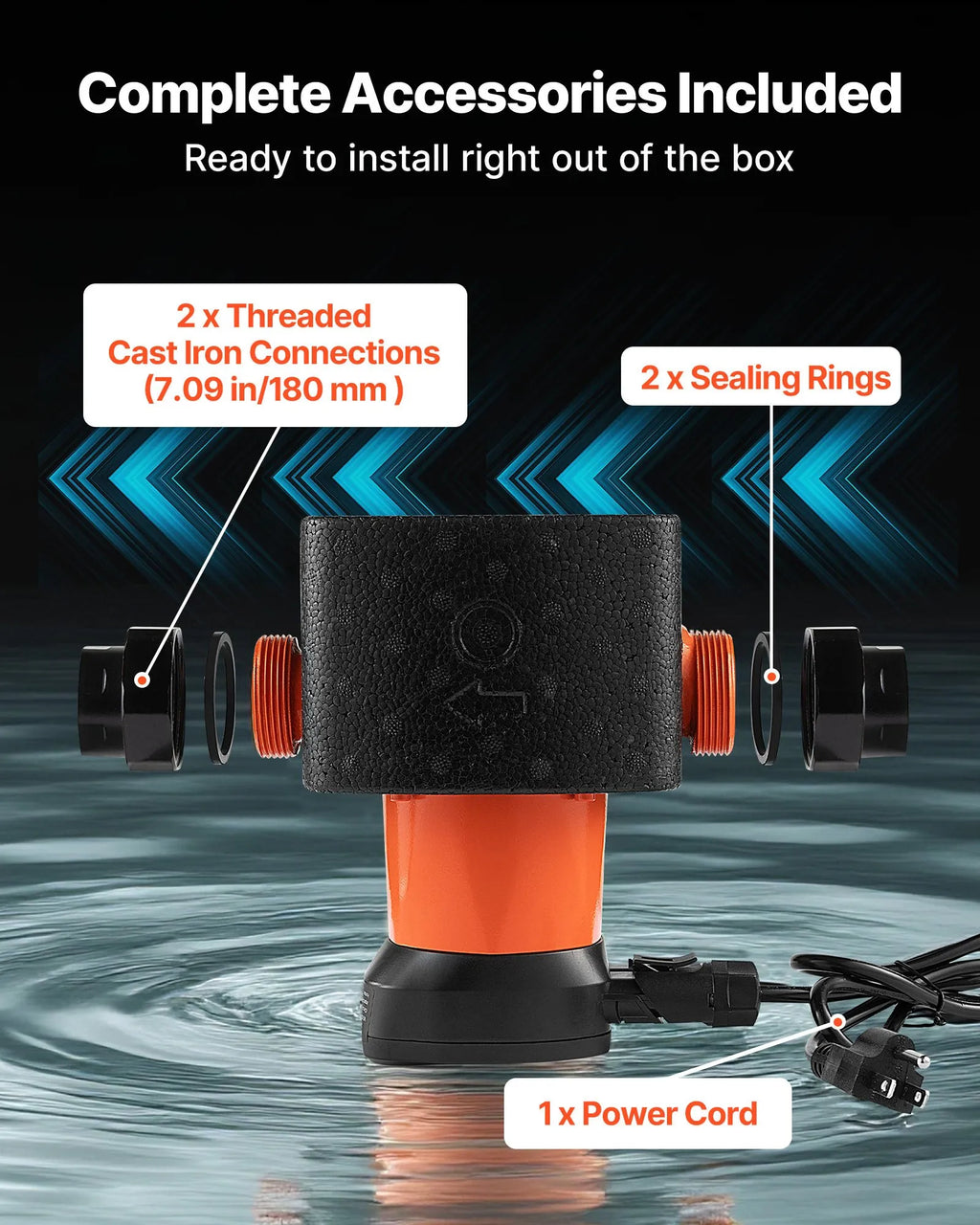 VEVOR LPS25-11PA/180 augstas efektivitātes cirkulācijas sūknis, 117 l/min, maks. pacēlums 11 m, čuguna karstā ūdens recirkulācijas sūknis ar vītņotu pieslēgumu un pretvārstu, klusa darbība mājas apkures sistēmām