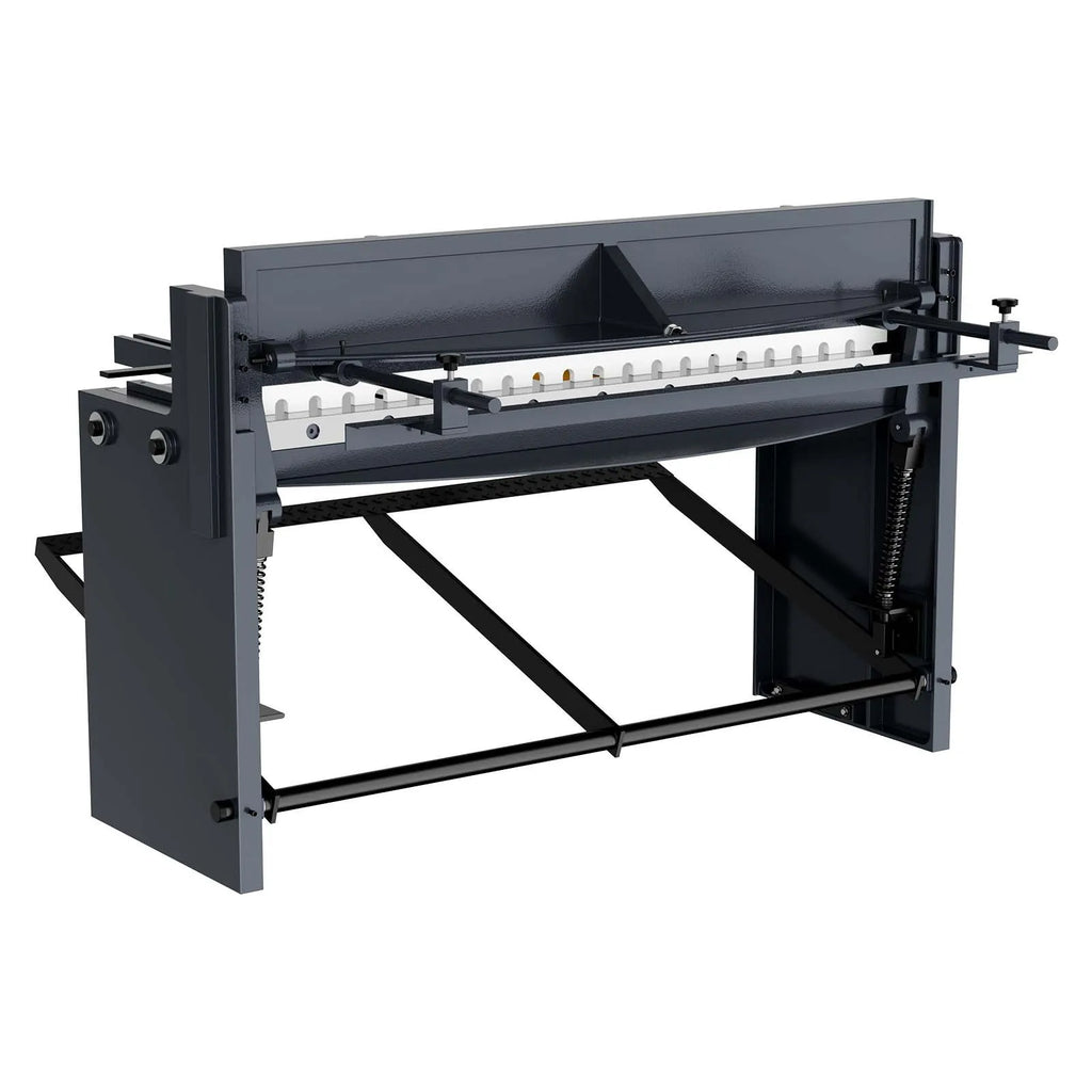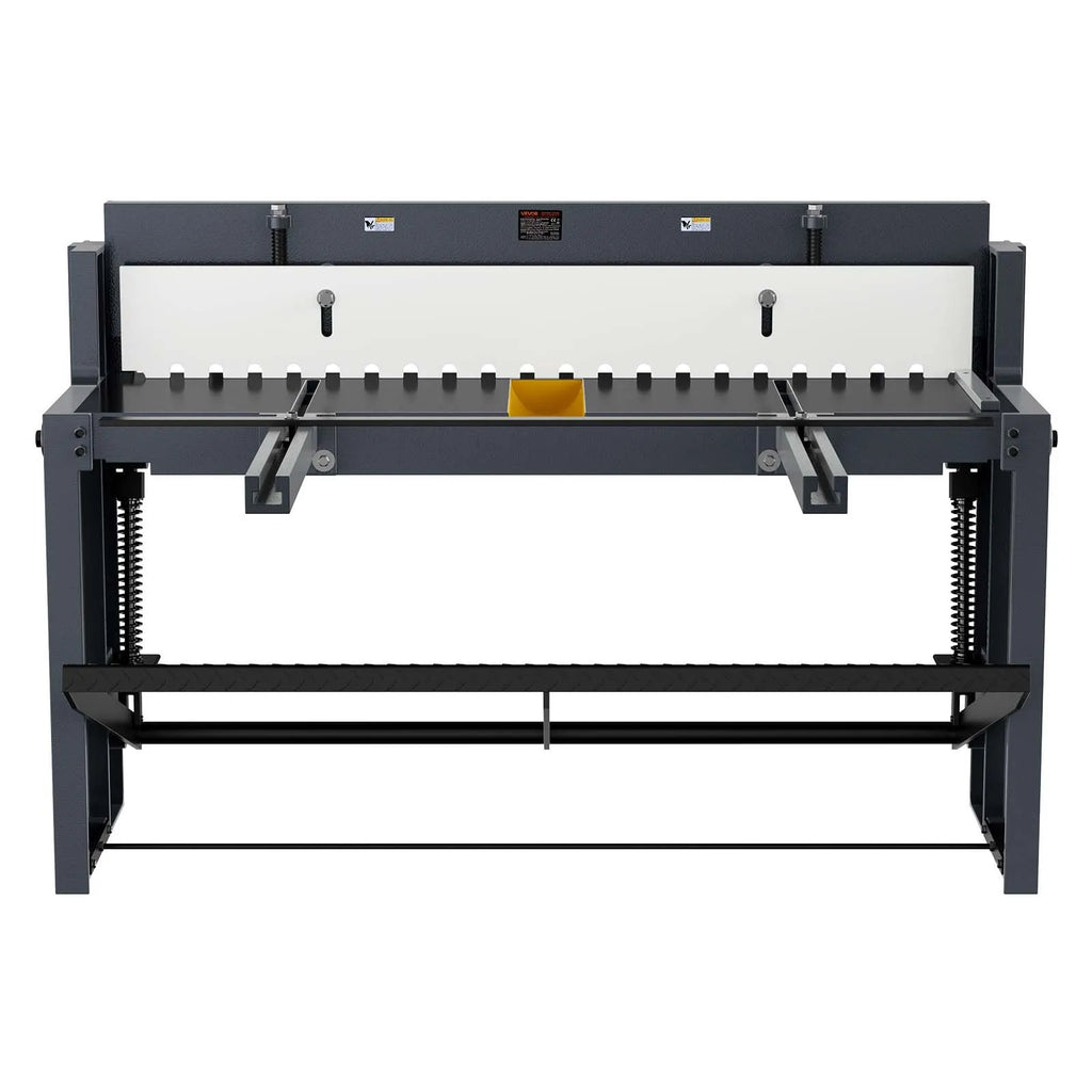 Šīs metāla šķēres ir aprīkotas ar kājas pedāļa vadību uzticamai un efektīvai darbībai. Priekšējā un aizmugurējā materiāla atdure nodrošina precīzu materiāla pozicionēšanu un atbalsta vairākkārtēju griešanu. Ar atsperi aktivizētais piespiedējstienis droši notur materiālu, padarot ikdienas lietošanu ērtāku.