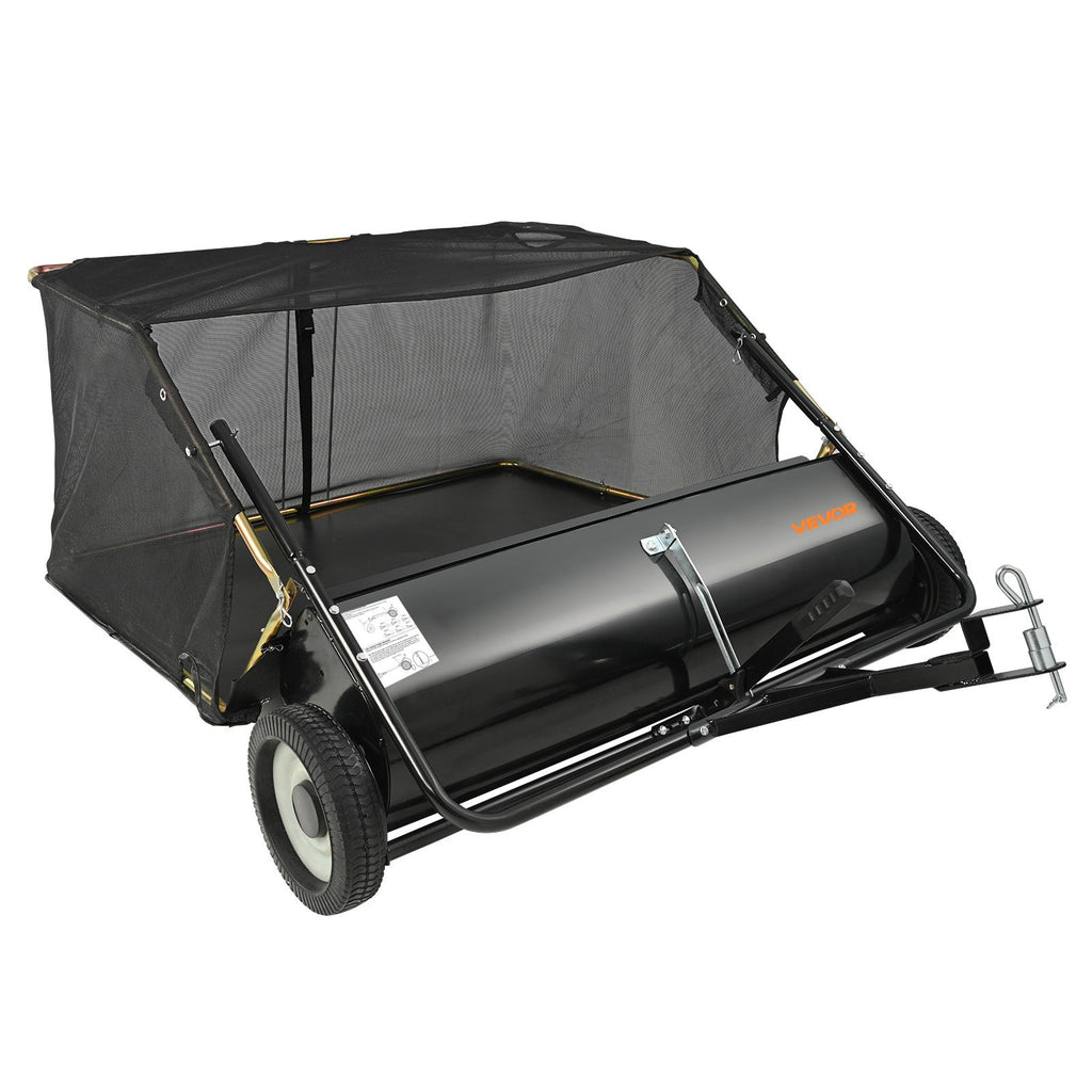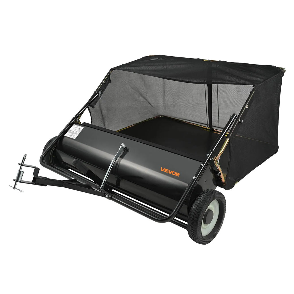 VEVOR piekabināms zāliena slaucītājs, 127 cm darba platums, 26 cu. ft liela ietilpība lapu un zāles savākšanai, pastiprinātas konstrukcijas dārza slaucītājs ar regulējamu slaucīšanas augstumu, pagalmam, zālienam un saimniecībai