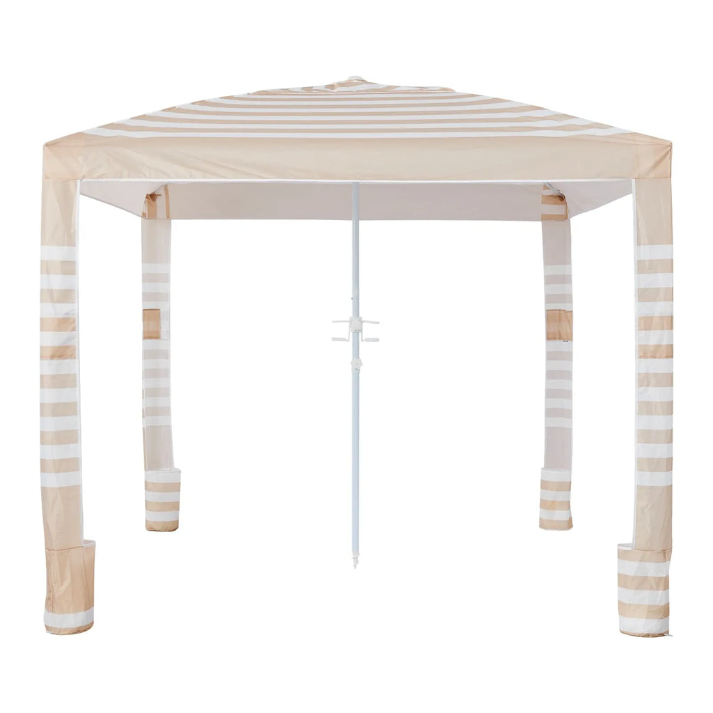 VEVOR pludmales kabana, 2,4 × 2,4 m pludmales nojume ar sānu sienu, UPF 50+ aizsardzība, viegli uzstādāma kabana telts ar smilšu kabatām, regulējams augstums, pārnēsājama saules aizsardzības nojume visai ģimenei un draugiem