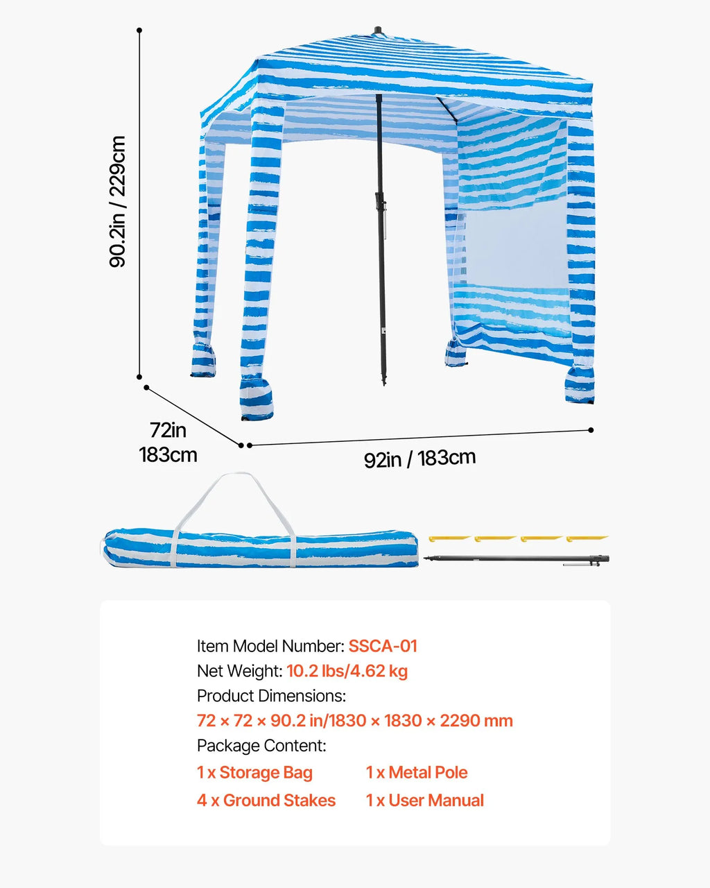 Šī viegli uzstādamā kabānas telts ir vienkārši salokāma un uzglabājama komplektā iekļautajā pārnēsājamajā somā, padarot to ērtu transportēšanai uz pludmali, kempingu vai jebkuru āra vietu