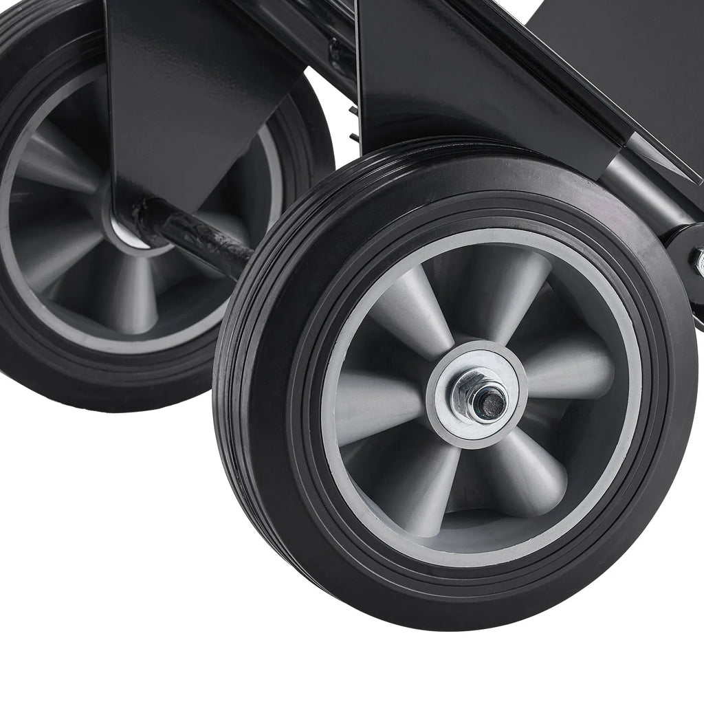 Īpašības un detaļas 272 kg liela celtspēja: Šie pastiprinātas konstrukcijas rokas ratiņi ir 48 × 46 × 119,9 cm izmērā, ar pamatni 32 × 29 cm un neto svaru 12,34 kg. Tie iztur līdz 272 kg slodzi un ir komplektēti ar nostiprināšanas siksnu drošai celšanai, pārvadāšanai un transportēšanai Vienmērīga un stabila pārvietošanās: Aprīkoti ar 20,3 cm diametra cietās gumijas riteņiem, ratiņi nodrošina stabilitāti uz dažādām virsmām, ir izturīgi pret caurduršanu un novērš šūpošanos. Neslīdošais rokturis samazina stumšanas spēku, ļaujot ērti pārvietot kravu pat pie pilnas slodzes Pastiprināta tērauda konstrukcija: Šie ratiņi ir izgatavoti no augstas izturības leģētā tērauda, nodrošinot stabilitāti un ilgmūžību. Konstrukcija ir noturīga pret deformāciju smagu kravu pārvadāšanas laikā, padarot tos piemērotus rūpnīcām, noliktavām un būvlaukumiem Ergonomisks dizains: Ratiņi ir aprīkoti ar ergonomisku, neslīdošu silikona rokturi drošam un ērtam satvērienam. Regulējamais rokturis pielāgojas dažādiem lietotāju augumiem, samazinot nogurumu un atvieglojot piegādes, pārvākšanās un ikdienas pārvadāšanas darbus Kompakta uzglabāšana: Kad ratiņi netiek izmantoti, tos var ērti novietot automašīnas bagāžniekā vai noliktavas stūrī. Pārnēsājamais, vietu taupošais dizains ir piemērots gan iekštelpu, gan āra pārvadājumiem mājās, birojos, noliktavās, rūpnīcās vai tirdzniecības centros