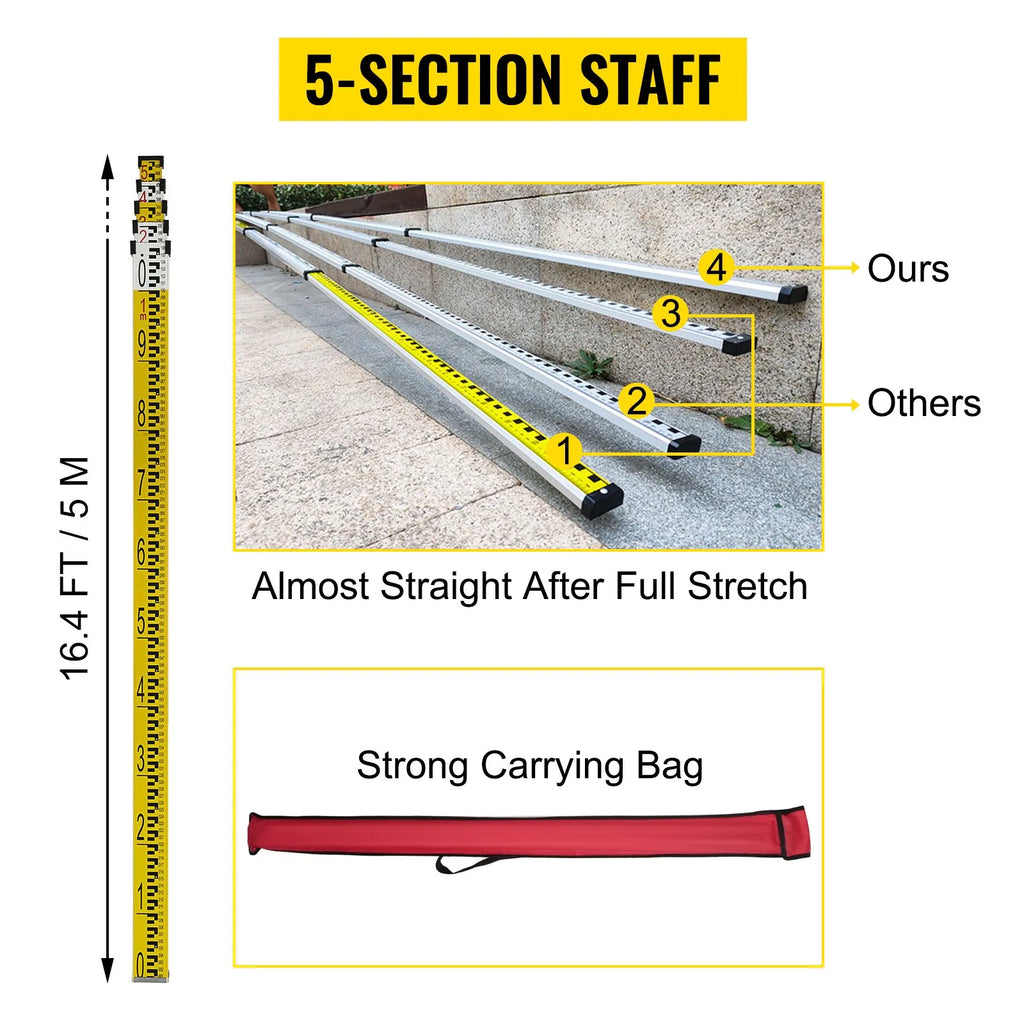 VEVOR sarkans rotējošs pašizlīdzinošs lāzera līmeņrādis ar automātisku nivelēšanu, 360° rotācijas skenēšana, darbības rādiuss līdz 500 m, komplektā statīvs un 5 m mērstienis