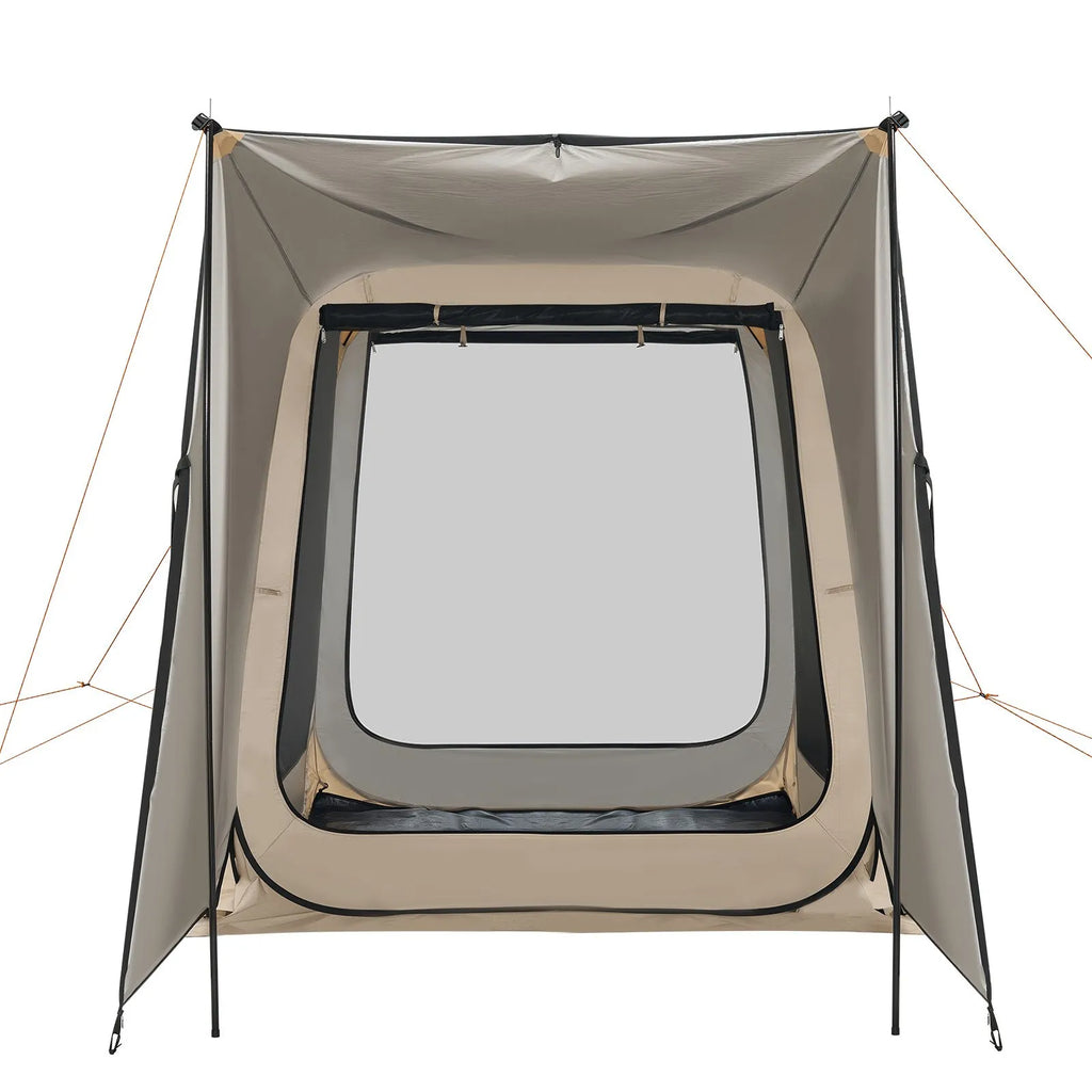 Ar plašiem izmēriem 1,83 × 1,83 m šī uznirstošā sietveida telts var uzņemt līdz 6 personām. To var izmantot brīvi stāvošu piknikiem vai piestiprināt pie automašīnas, lai iegūtu papildu ēnojumu un vietu.