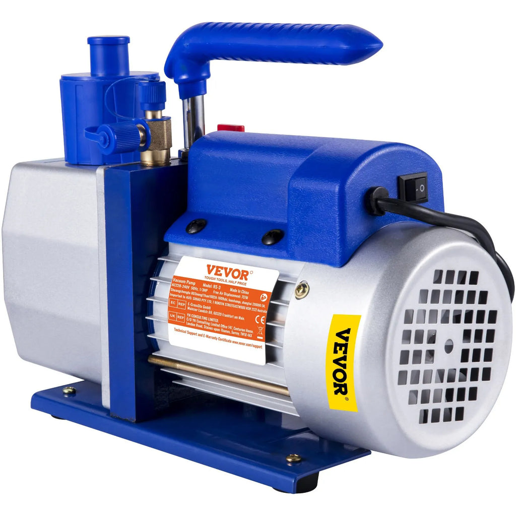 Izturīgs vakuumsūknis: Brīvās gaisa padeves apjoms 198 l/min, vienpakāpes konstrukcija; jauda 370 W. HVAC vakuumsūknis ir izgatavots no izturīga alumīnija sakausējuma, nodrošinot ilgmūžību un stabilitāti. Jaudīgs vara motors nodrošina nepārtrauktu jaudu, savukārt triecienizturīgā pamatne veicina stabilu darbību.