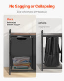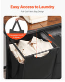 Nodilumizturīgi auduma maisi: izgatavoti no 600D oksforda auduma, šie maisi ir izturīgi, ūdensnecaurlaidīgi un viegli tīrāmi. PP pamatne uztur maisus taisnus un novērš iegrimšanu, kad tie ir piepildīti ar veļu. Katrs maiss iztur līdz 5 kg, viegli noturot arī biezas drēbes