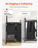 Nodilumizturīgi auduma maisi: izgatavoti no 600D oksforda auduma, šie maisi ir izturīgi, ūdensnecaurlaidīgi un viegli tīrāmi. PP pamatne uztur maisus taisnus un novērš iegrimšanu, kad tie ir piepildīti ar veļu. Katrs maiss iztur līdz 5 kg, viegli noturot arī biezas drēbes