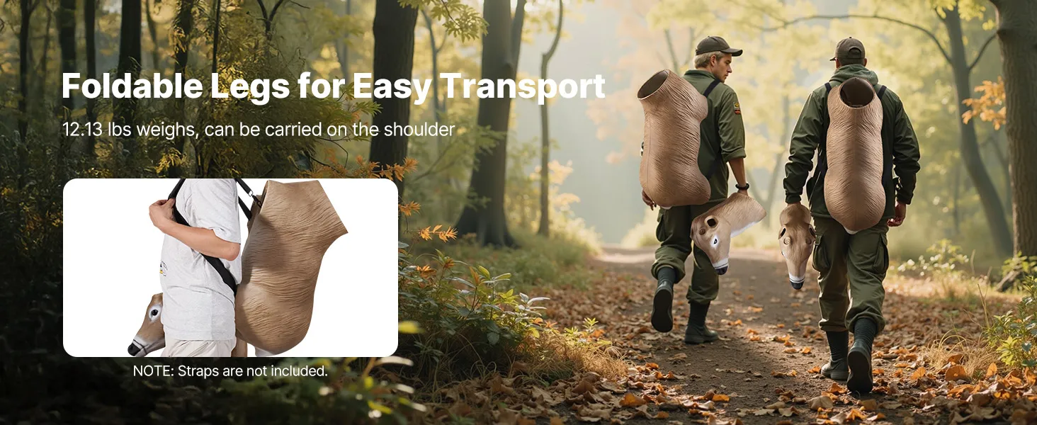 Šis reālistiskais brieža māneklis ir ārkārtīgi ērts lietošanākājas var ievietot korpusā, padarot to kompaktāku un vietu taupošu. To ir viegls pārnēsāt medību laikā, ļaujot sākt medības bez piepūles un aizķeršanās!