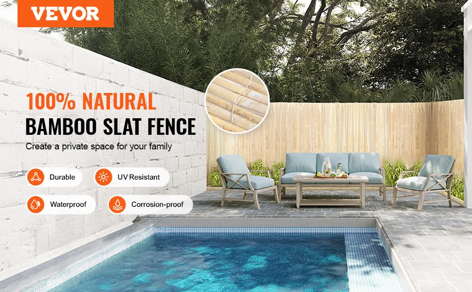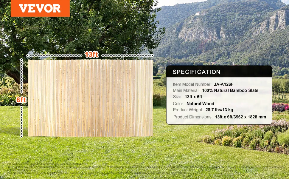 100% dabīgs bambuss: izgatavots no dabīgā Moso bambusa, kas atklāj dabas krāsas un faktūru. Gluda un tīra virsma padara to ideāli piemērotu āra žogiem, baseinu norobežošanai, telpu atdalīšanai vai sienu dekorēšanai. Bambusa līstīšu siets aiztur spēcīgus saules starus un pasargā no svešiem skatieniem, vienlaikus saglabājot gaismas un gaisa caurlaidību, radot privātu telpu.