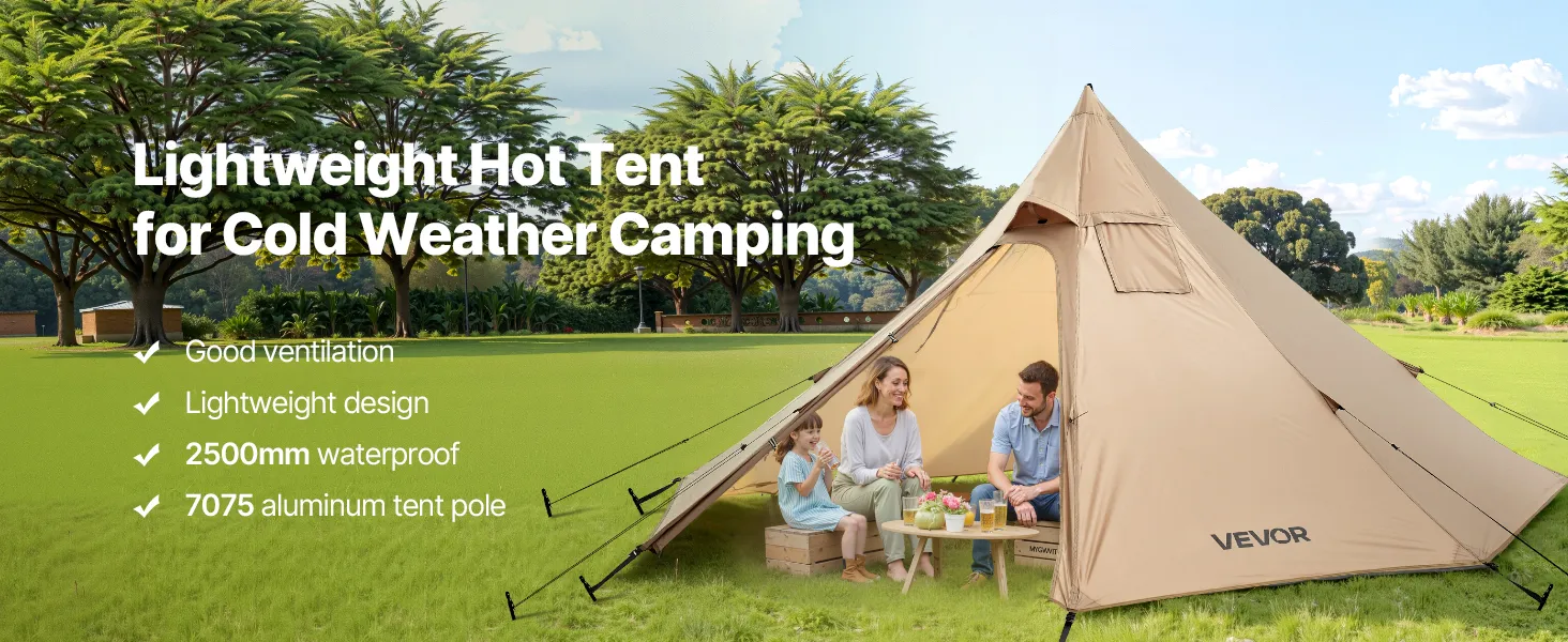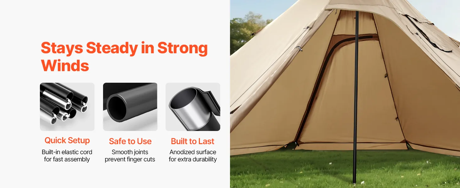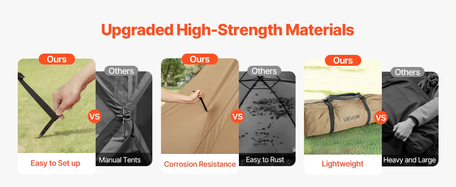 Vēja un ūdens izturīga: Izgatavota no plīsumizturīga 210T poliestera ar PU2500 mm ūdensnecaurlaidības pārklājumu, šī ziemas kempinga telts nodrošina aizsardzību un sausumu arī skarbos laikapstākļos.