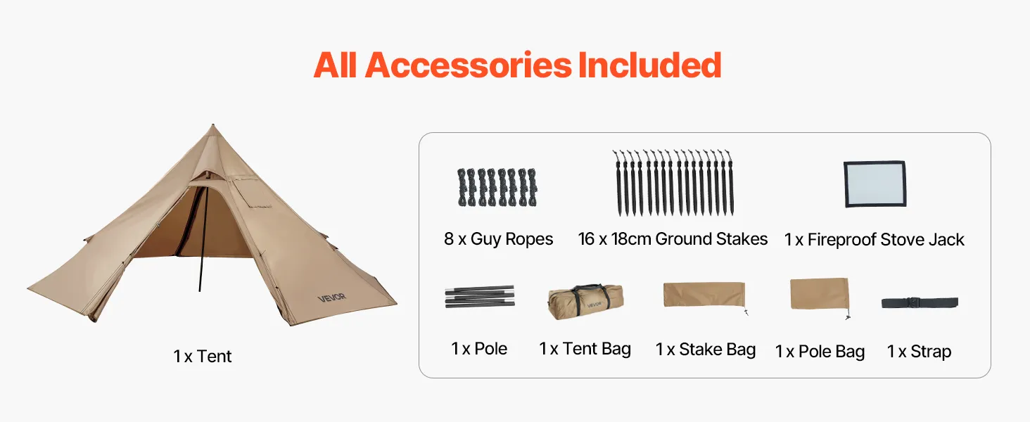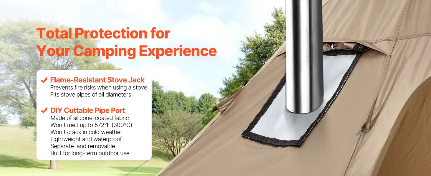 Četru sezonu telts ar krāsns izvadu: Šī tipija tipa telts ir ideāli piemērota ģimenes un grupu kempingiem. Aprīkota ar liesmu aizturošu krāsns izvadu, tā ir piemērota lietošanai visu gadu, nodrošinot komfortu un siltumu arī aukstos laikapstākļos.