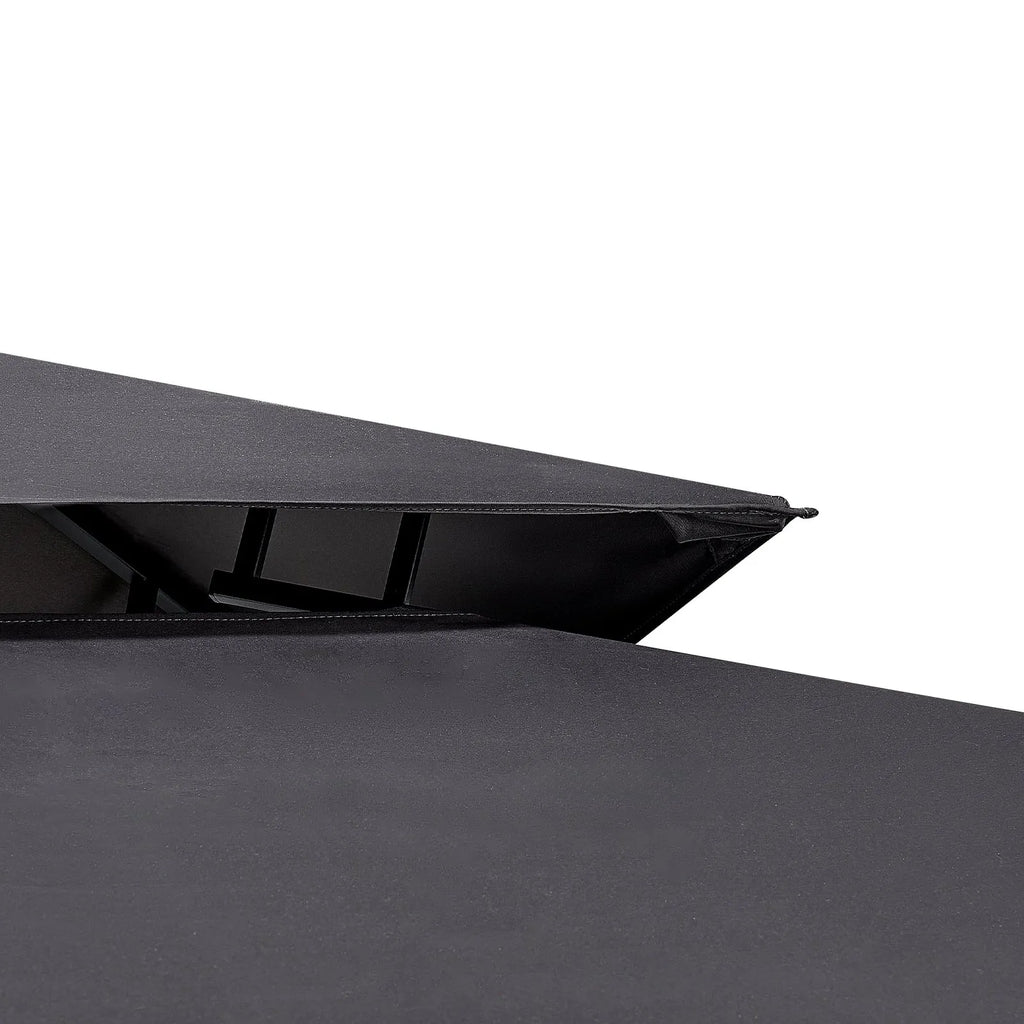 Divslāņu jumts: BBQ nojume ir aprīkota ar divslāņu mīkstu jumtu, kas veicina gaisa cirkulāciju un efektīvi izvada grilēšanas dūmus. Izgatavota no augstas kvalitātes auduma ar aizsardzību pret UV starojumu, tā pasargā no saules un neliela lietus, radot patīkamu un vēsu āra vidi.