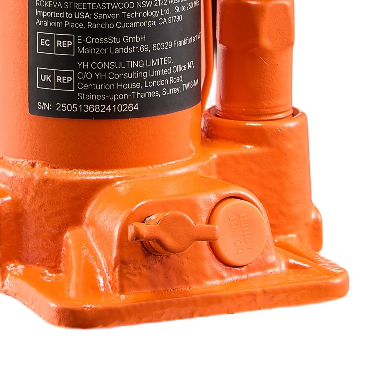 Šis pudeļveida domkrats ir izstrādāts ar pastiprinātu platu pamatni, lai samazinātu apgāšanās, sasvēršanās vai pamatnes deformācijas risku.