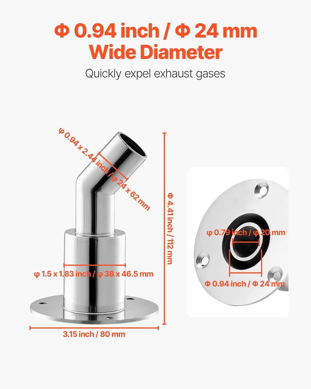 Mūsu izplūdes korpusa savienojums ir izgatavots no izturīga nerūsējošā tērauda ar augstas kvalitātes apdari, nodrošinot stabilitāti un ilgmūžību. Tas iztur augstu temperatūru un koroziju, nodrošinot vienmērīgu izplūdes gāzu plūsmu jūras vai automobiļu apkures sistēmās.
