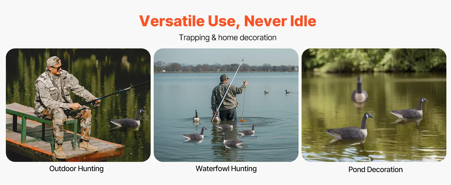 Papildus profesionālai medībai šie zosu mānekļi ir lieliski piemēroti dārzu, dīķu, ezeru vai pagalmu dekorēšanai, piešķirot āra videi dabisku un dzīvīgu noskaņu.