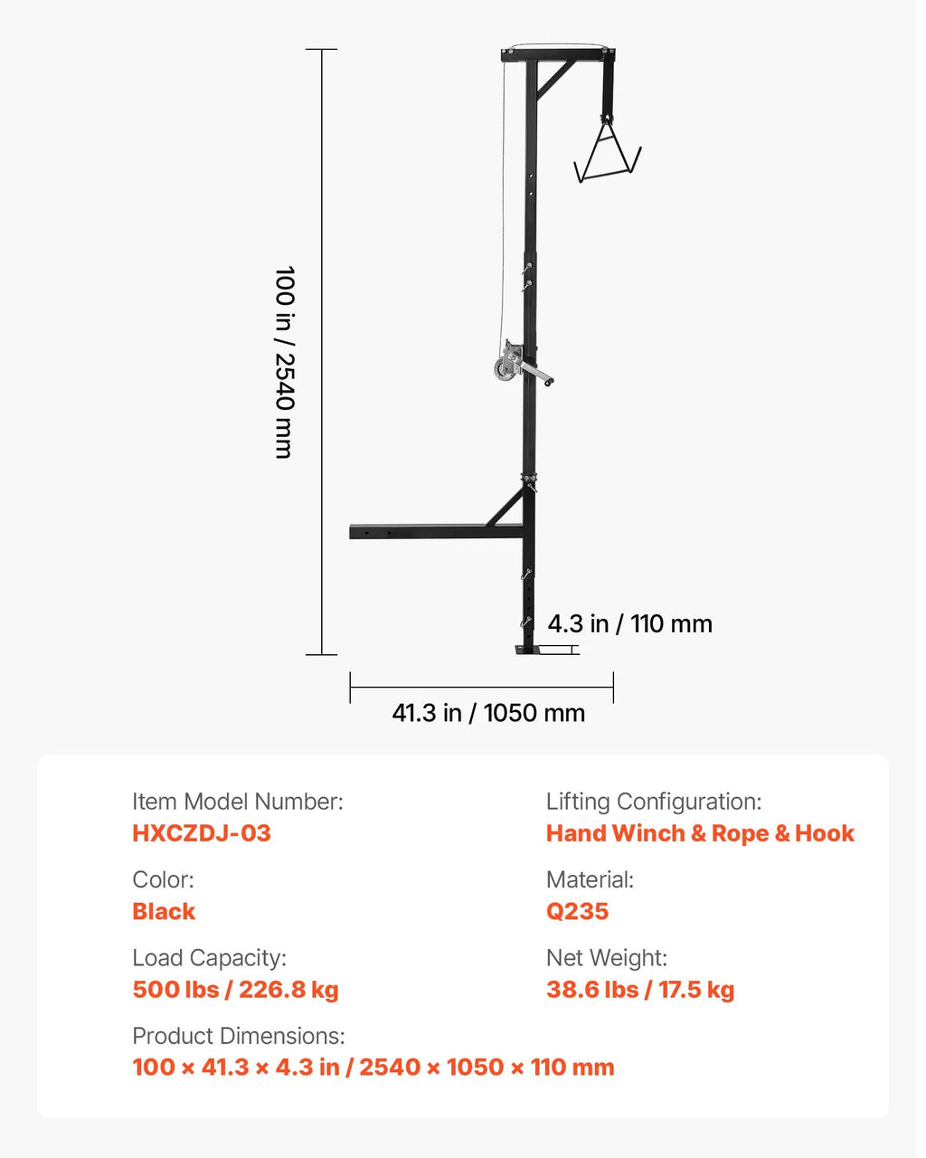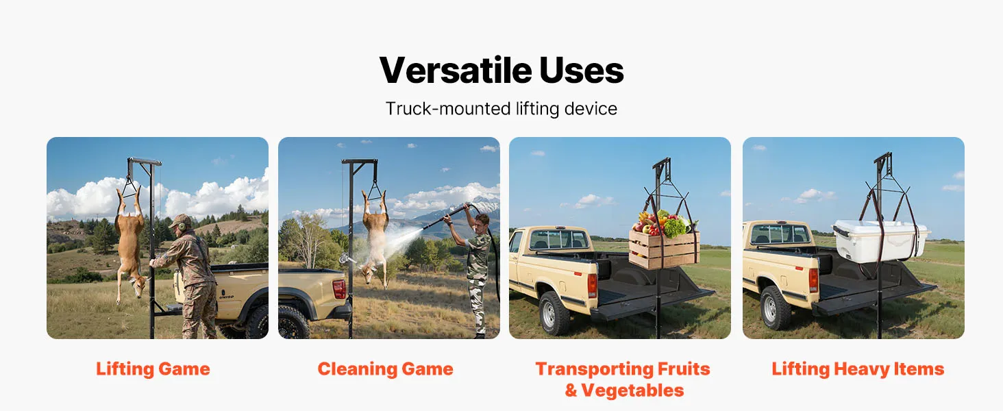 Daudzpusīga izmantošana: Mūsu medījuma pacēlājs ir aprīkots ar 50,8 mm piekabes stiprinājumu, kas ir saderīgs ar dažādu veidu transportlīdzekļiem. Ideāli piemērots medībām, mājlopu pacelšanai, augļu un dārzeņu pārvadāšanai vai smagu priekšmetu pacelšanai ārpus telpām.