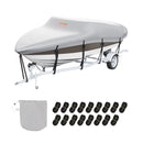 Vētrām noturīga aizsardzība: Mūsu ūdensizturīgā laivas pārsega regulējamās siksnas nodrošina ciešu piegulumu. Izturīga elastīga mala pārsega iekšpusē nodrošina ciešu noslēgumu, pielāgojoties nelielām izmēru novirzēm un saglabājot ciešu piegulumu korpusam. Šīs īpašības nodrošina stabilu aizsardzību arī skarbos laika apstākļos, piemēram, vētrās vai sniegputeņos.