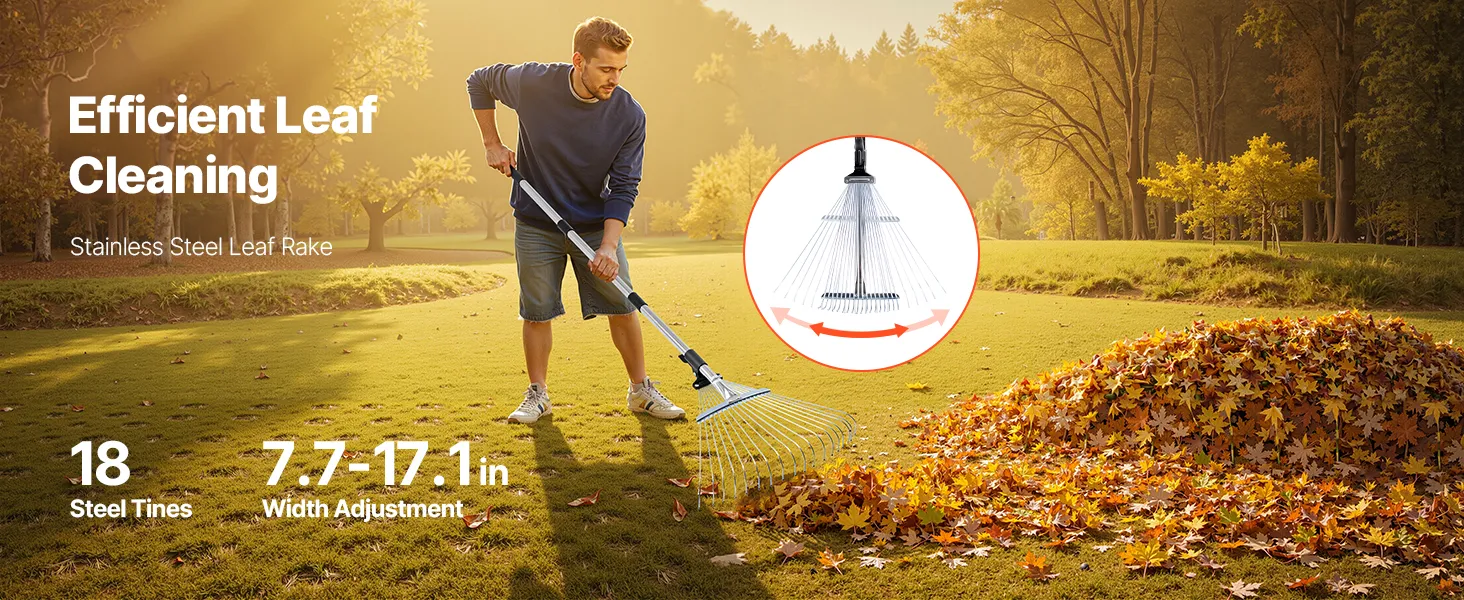 Regulējama darba daļa: Skrūvgriezis nav nepieciešams - darba daļu var viegli paplašināt no 19,5 līdz 43,5 cm. Ideāli piemērots lapu un gružu savākšanai gar puķu dobju malām, terases spraugām un zem krūmiem, viegli tiekot klāt šaurās vietās.